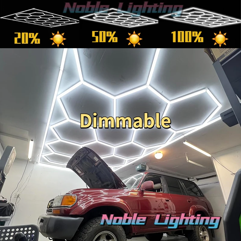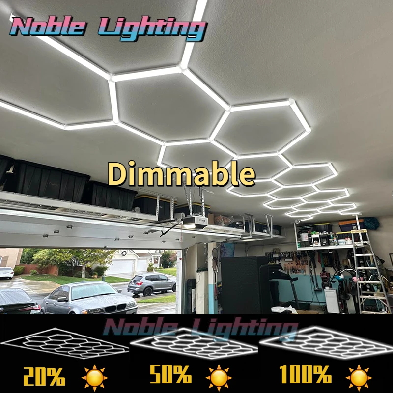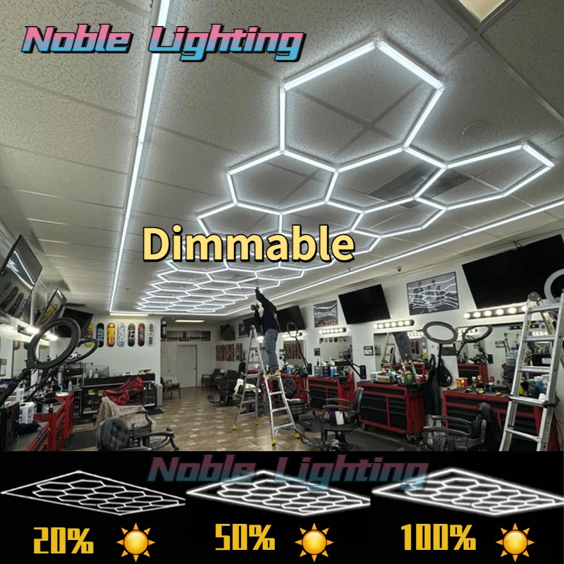 New Dimmable Garage Lamp Dimmable Hexagon Honeycomb Light Led Aluminium Tube Car Repair Store Work Lighting Workshop Ceiling Light