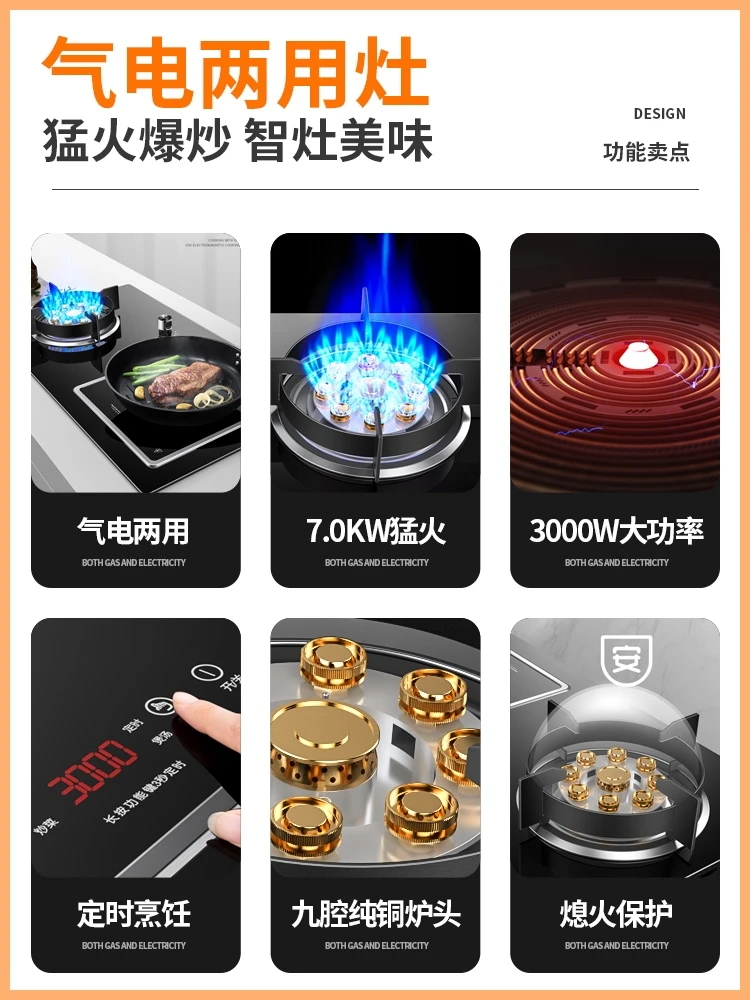 Gas and Electric Dual Purpose Gas Stove High Fire Stove Electromagnetic Stove Gas Stove Integrated