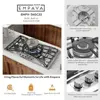 Empava recessed gas cooktop offers you the flexibility you need to make all your favorite dishes with precision and flair 4 different versatile burner size with a Dual Ring 12000-BTU burner, a 10000-BTU burner, double 6500-BTU burner and 4000-BTU burner distribute even heat for simmer, boil, stir-frying, steaming, melting or even caramelizing! Now you are cooking! Enjoy all these features even more by knowing this cooktop. Product Dimensions: 36. 02 in. L x 20. 67 in. W x 2. 1 in. H, Cutout Dimensions: 34. 68 in. L x 19. 33 in. W. Pre-installed 110v power cord, Natural Gas Regulator and LPG Nozzles included. (LPG Conversion Kit included)