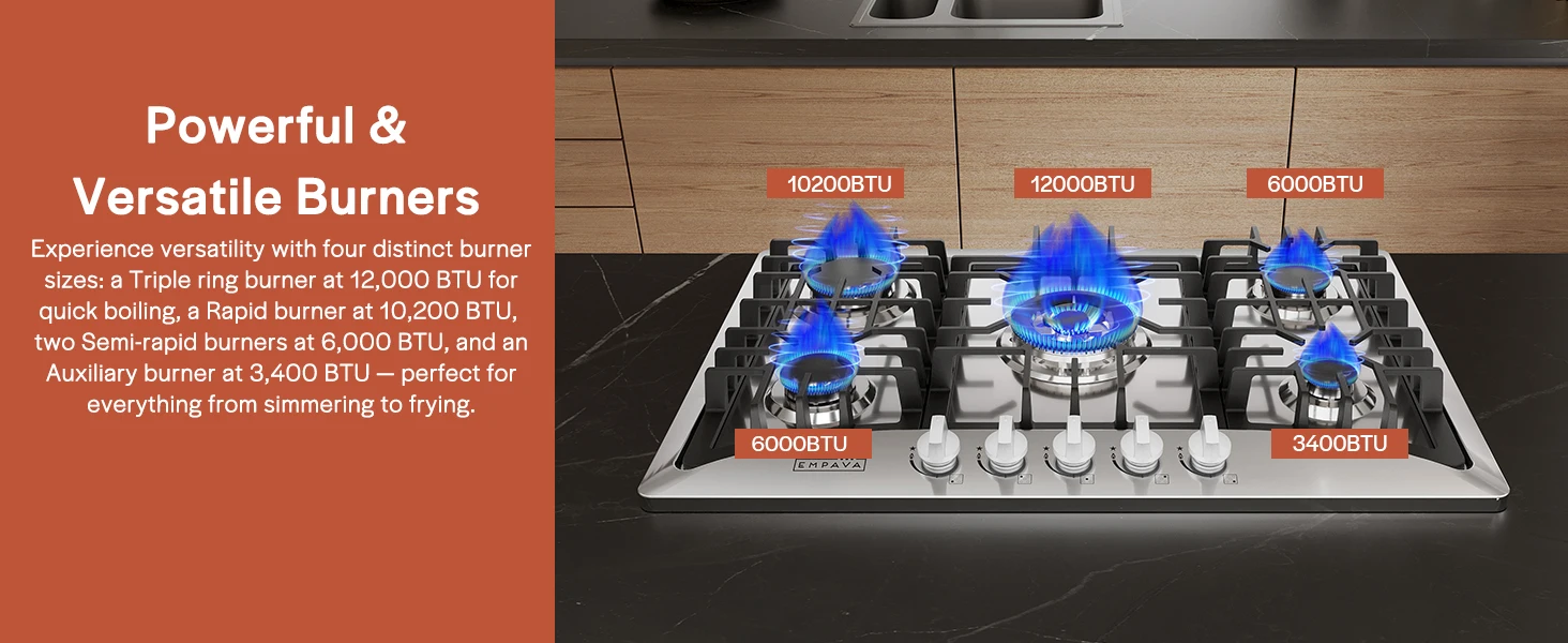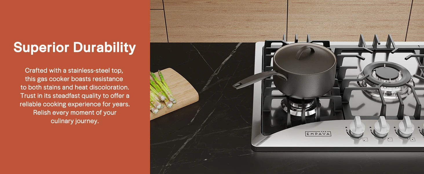 Dishwasher-safe knobs and heavy cast iron grates ensure easy, hassle-free cleaning. Keep your cooktop effortlessly pristine.