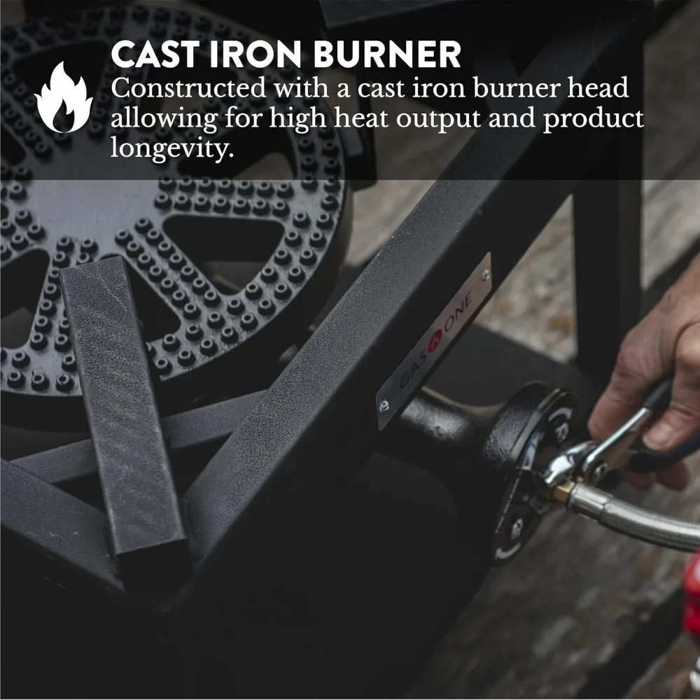 - STURDY BUILD – The high-pressure heavy duty burner was made with three things in mind: a stable and extremely sturdy frame, a powerful heat source, and an easily accessible, easily portable low profile design; the B-5350’s frame, as well as it’s cast iron burner head, was created to last long and withstand consistent usage