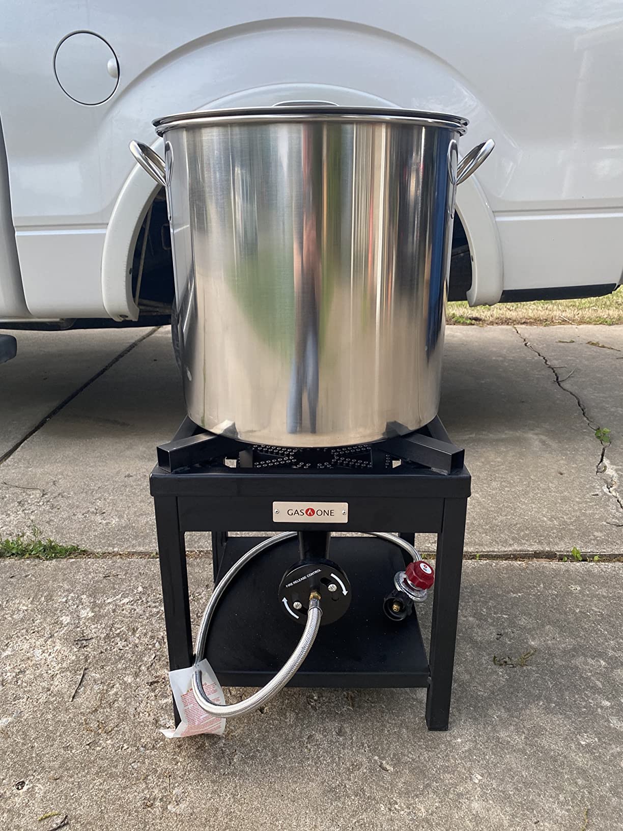 This cooker is very sturdy and puts out a very hot blue flame. The burner is wide and produces lots of flame. Pot size comes to play because of this. Opening right above burner is 9 3/4” apart from the surface your pot can sit on. Typical Bass Pro pot is almost to small in diameter to sit on top. It will work though. I’ve cooked a few times with it. Just make sure it’s centered on the burner. I’ve purchased a larger diameter pot because of this. Also a 53 quart or 62 quart pot fits perfectly on this burner for any crab or shrimp boil. Or deep fried Turkey. Recommended to friends and one of them purchased one and loves it. Only thing to remember is the size of pot you may need. A 14” diameter pot on the bottom is what I would recommend. Giving you at least 2 inches of surface for it to sit on each of the brackets.