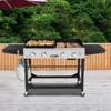 - Portable: Easy to assemble within 15 minutes. With fold-down legs for compact storage and four locking casters for easy-moving, it is ideal for cookouts.