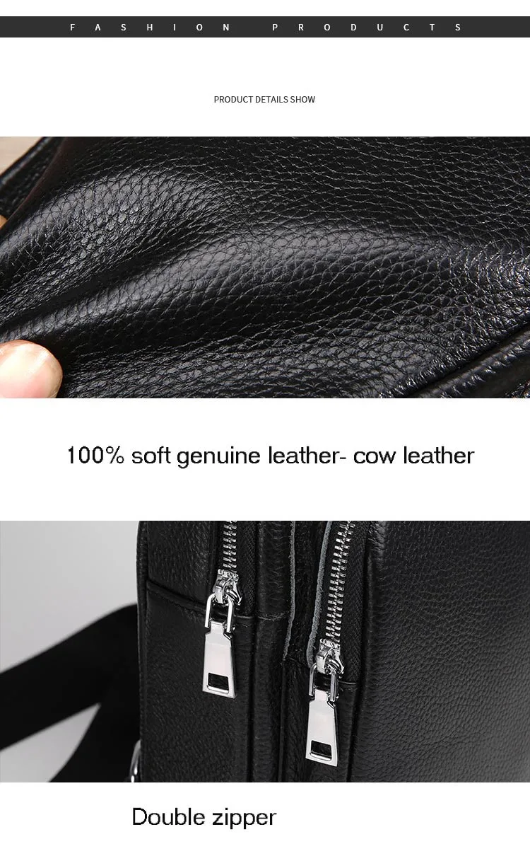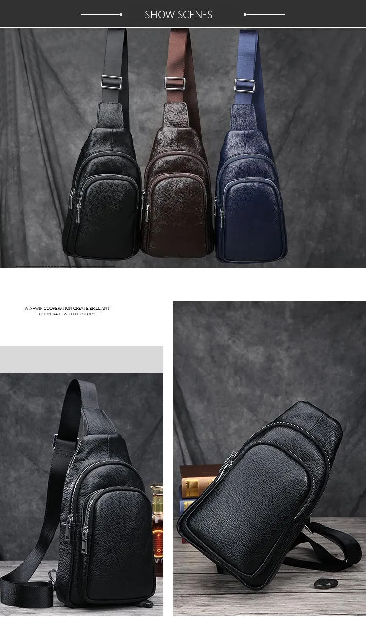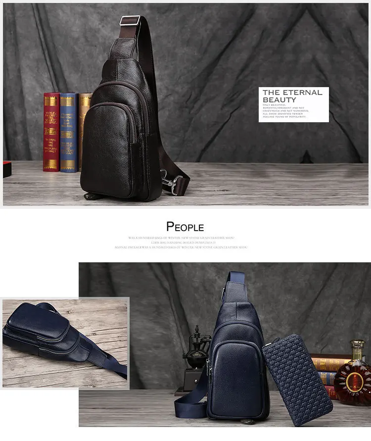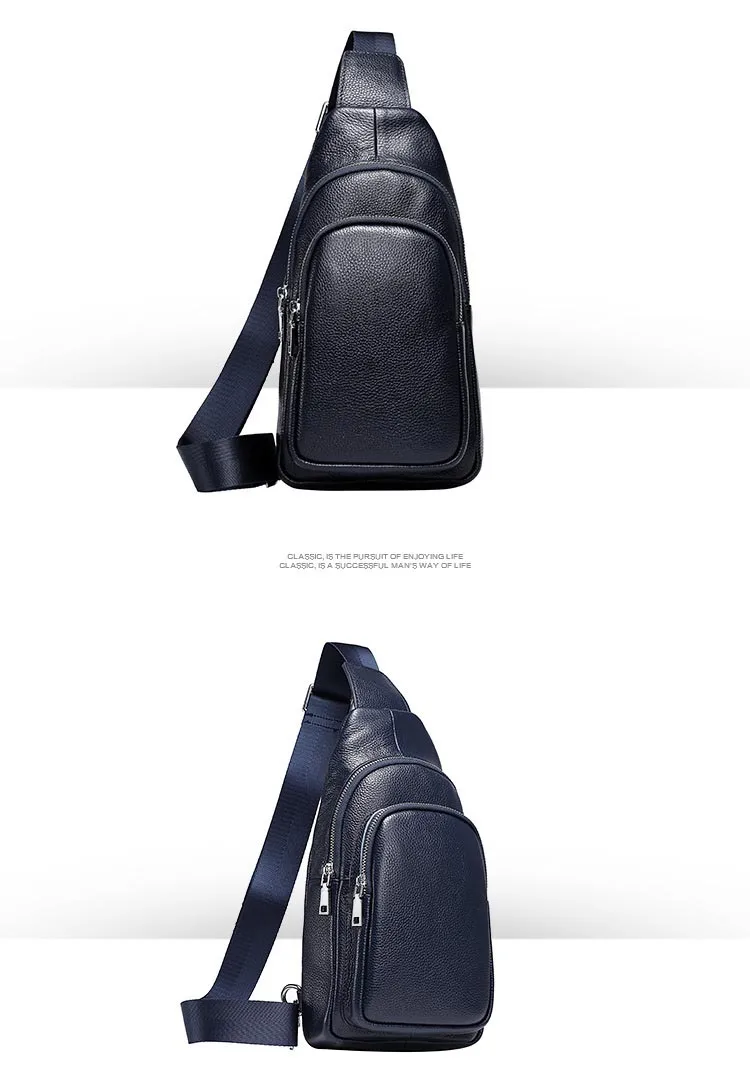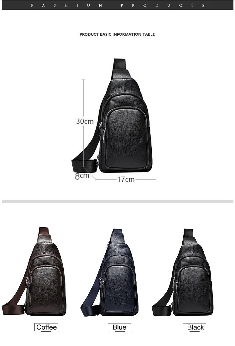 Genuine Leather Crossbody Bags For Men Chest Bag Pack Male Small Messenger Shoulder Bags Blue Coffee Soft Leather Sling Bag Men