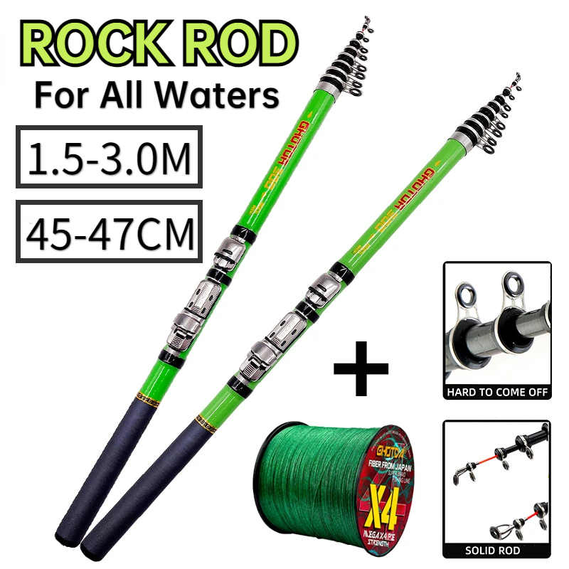 GHOTDA 1.5-3.0m Ultralight Telescopic Rock Fishing Rod Combo Short Carbon Baitcasting Pole for Pike Bass Fishing Tackle Pesca