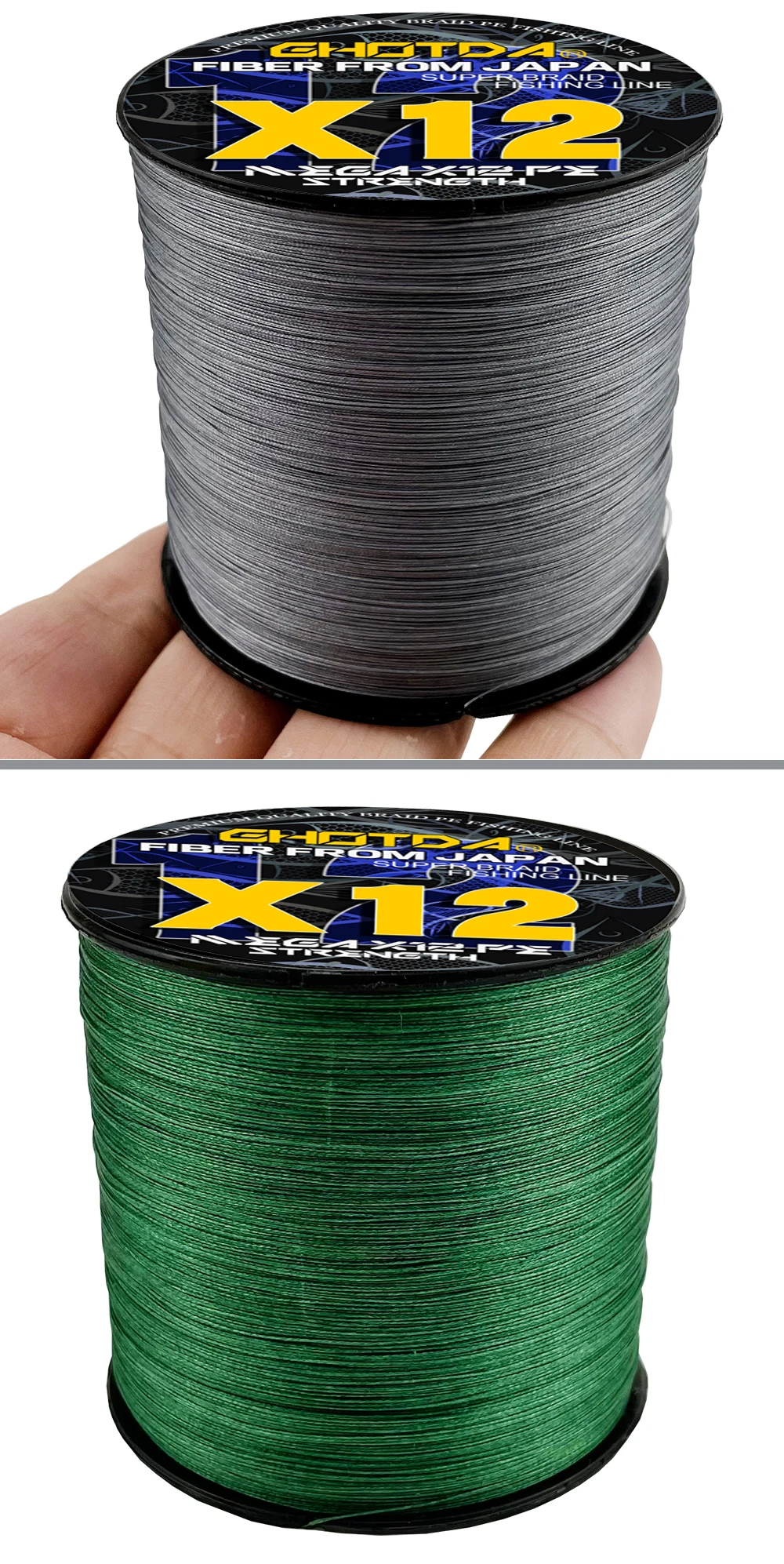 2: 12 Strands PE line, unique braid construction, made of ultra-high strength PE fibers.