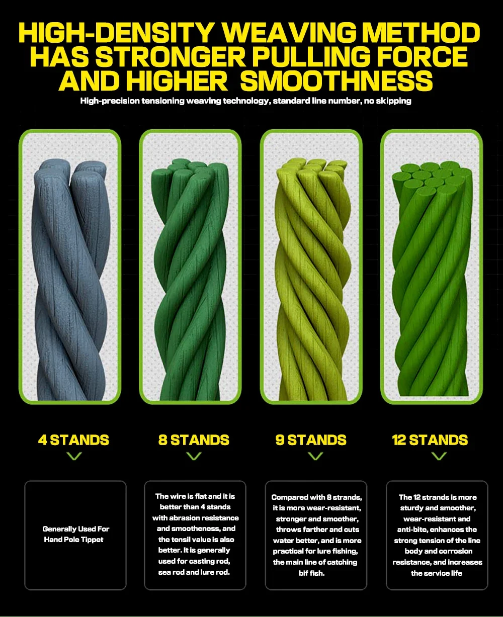* Strength Test: 12 Strands > 9 Strands > 8 Strands