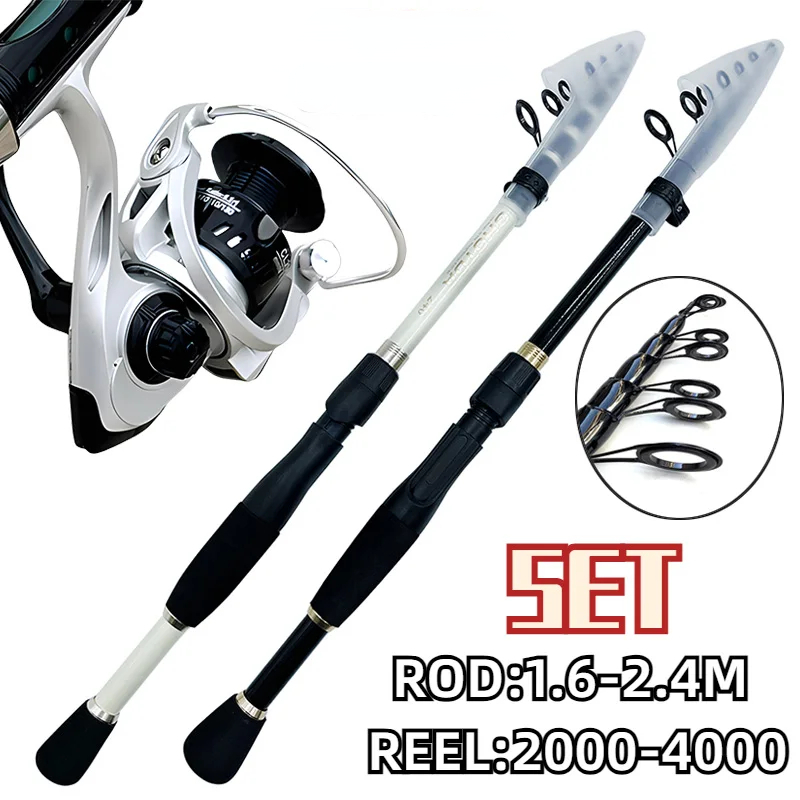 GHOTDA Telescopic Fishing Rod Combo 1.6-2.4M Spining Lure Pole with 5.2:1 High Speed Gear Ratio Baitcasting Reel for All Waters