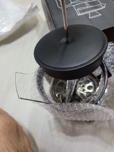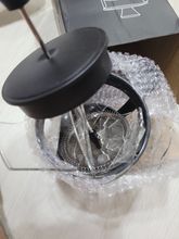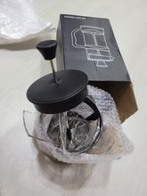 2. This French coffee press is equipped with heat-resistant borosilicate glass cups and a stylish PP frame that makes pouring coffee easier and prevents shaking.