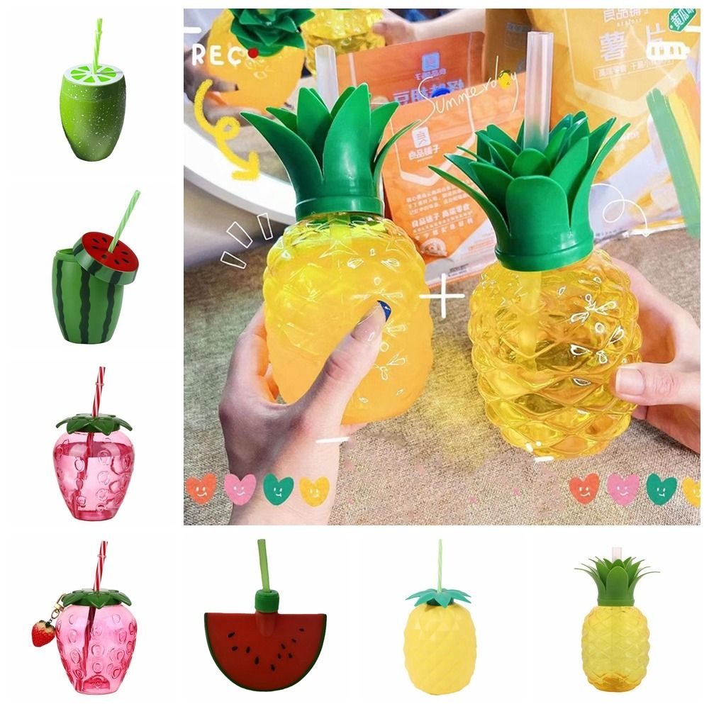 Gift Cartoon Fruit Straw Cup Watermelon Lemon Food Grade Plastic Water Bottle Tea Milk Juice Multicolor Drinkware Summer