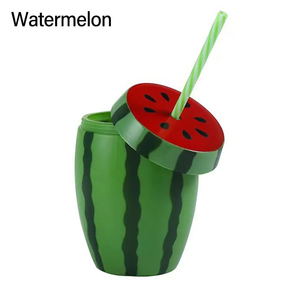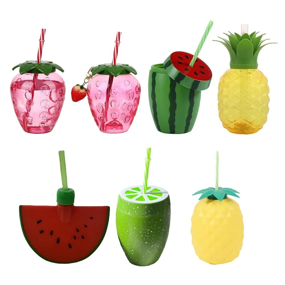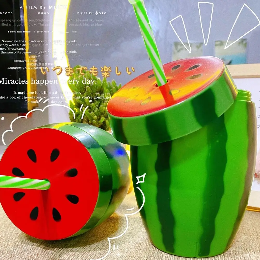 Gift Cartoon Fruit Straw Cup Watermelon Lemon Food Grade Plastic Water Bottle Tea Milk Juice Multicolor Drinkware Summer
