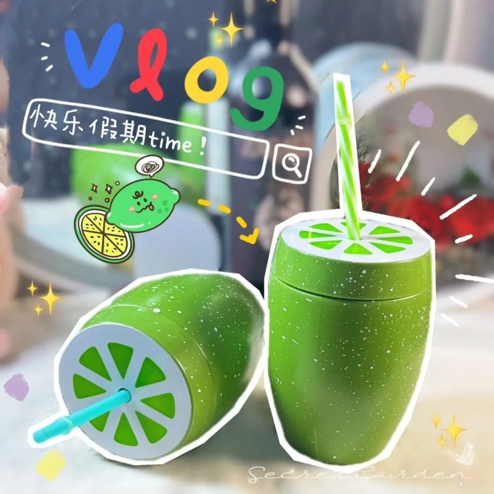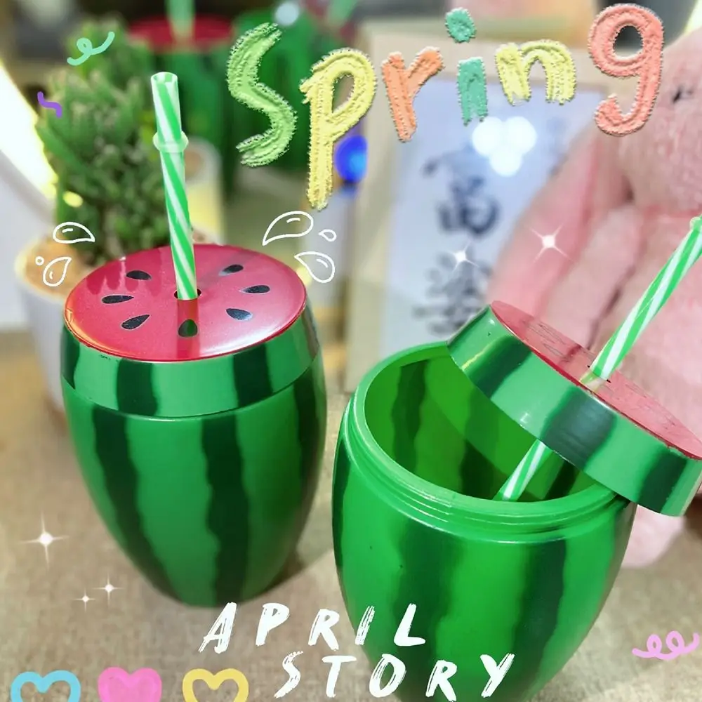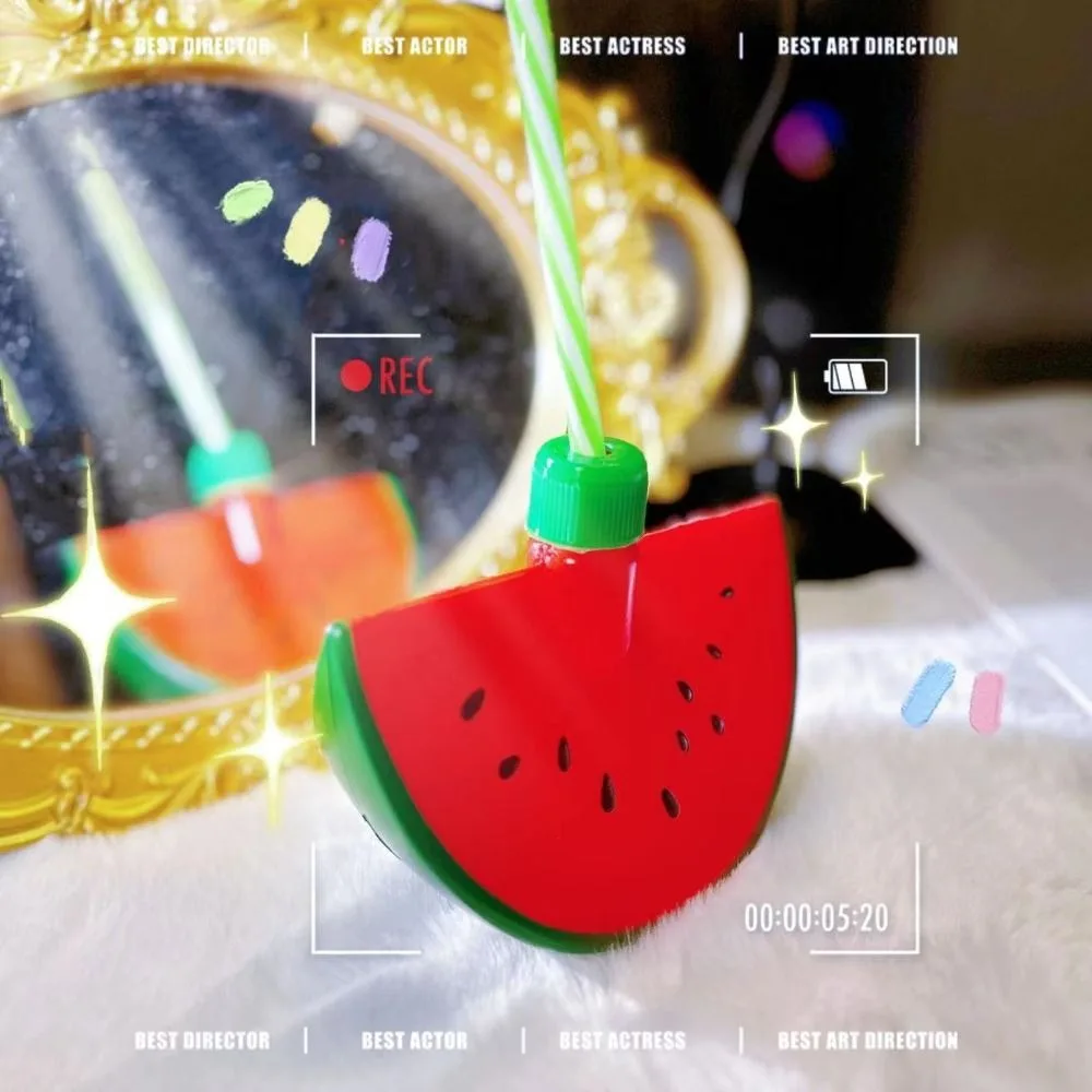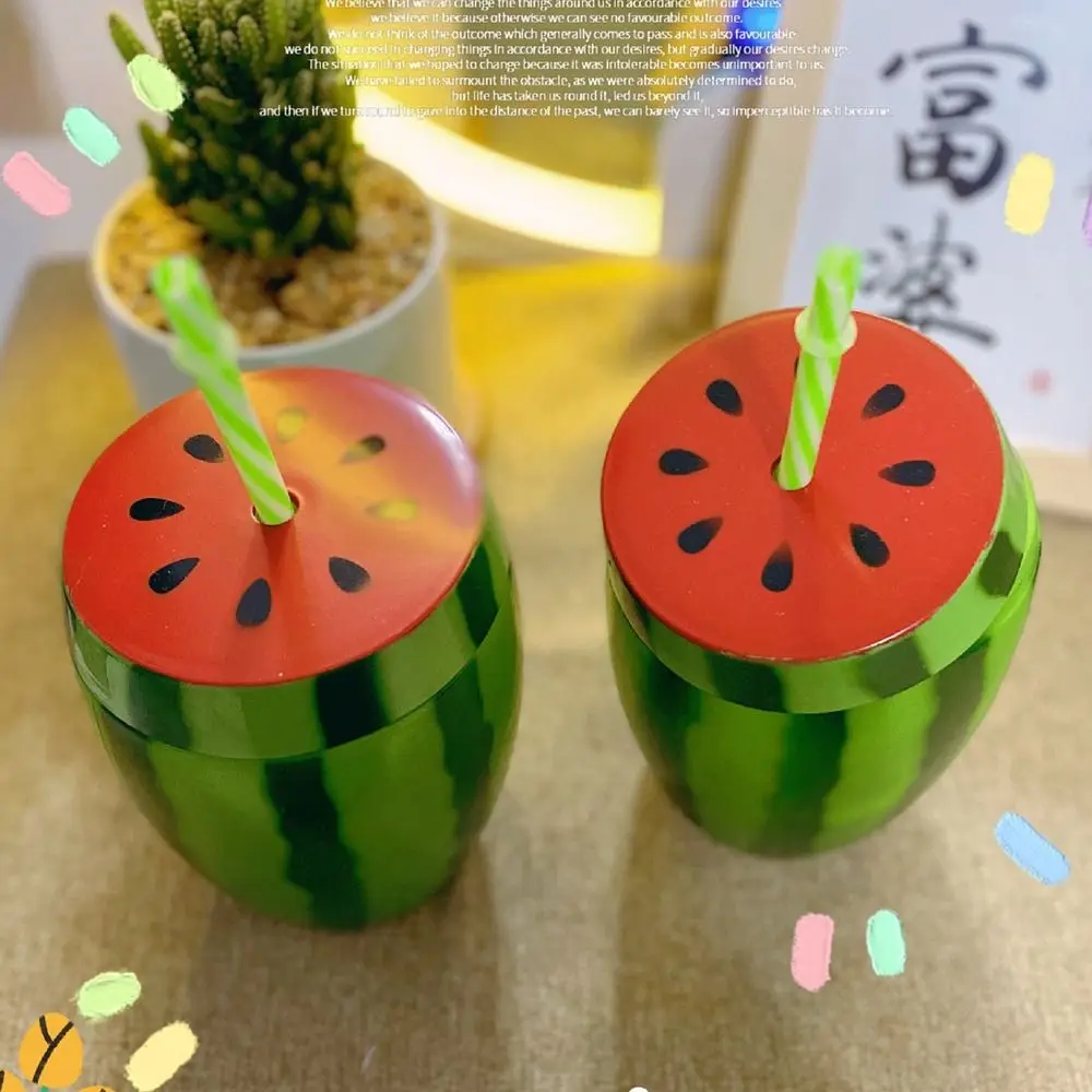 Gift Cartoon Fruit Straw Cup Watermelon Lemon Food Grade Plastic Water Bottle Tea Milk Juice Multicolor Drinkware Summer