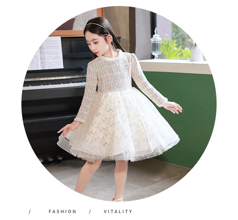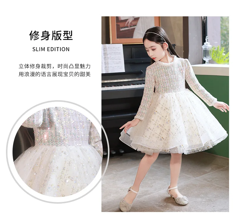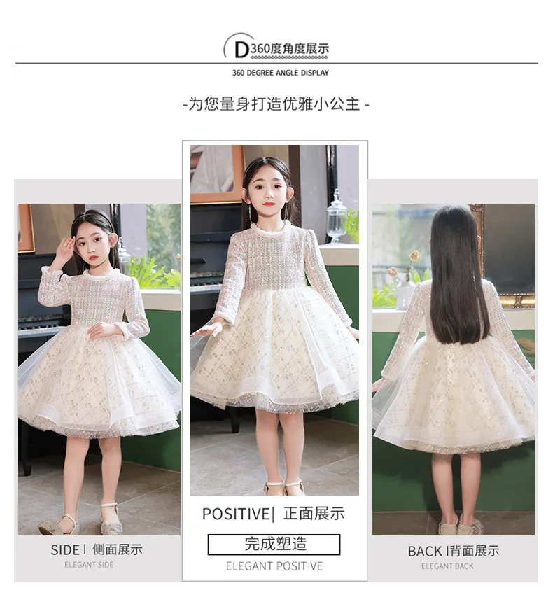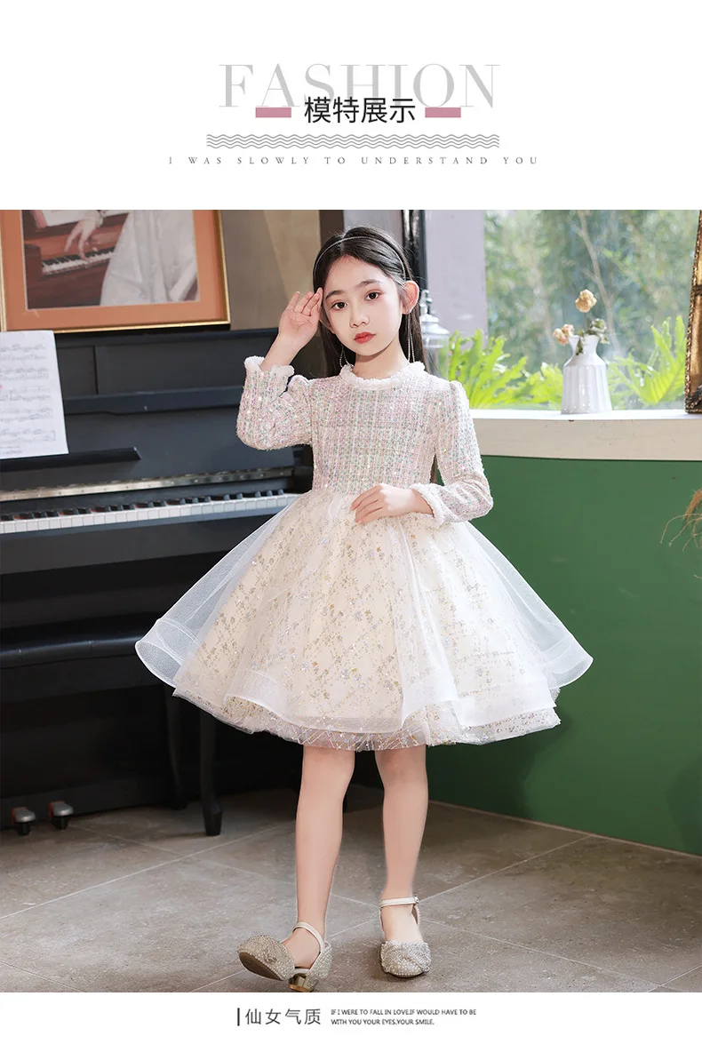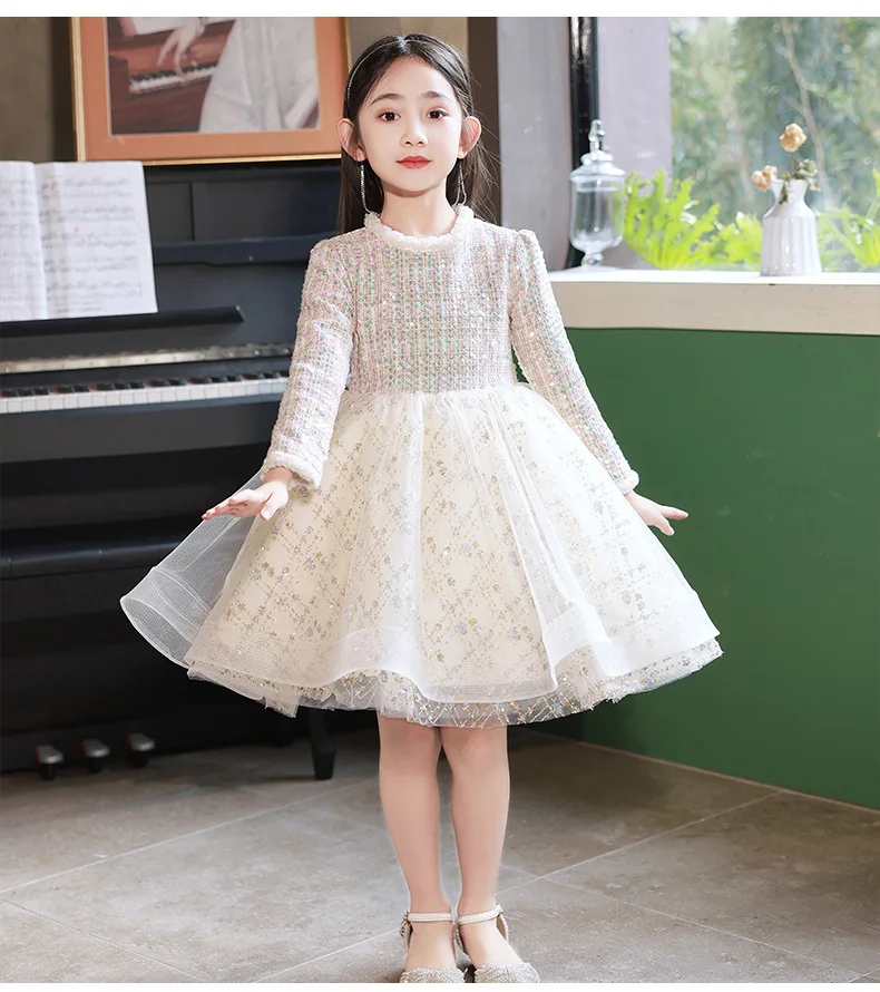 Girl’s Dress Entry Lux Elegant Princess Dress Host Piano Playing Flower Girl Bubble Skirt
