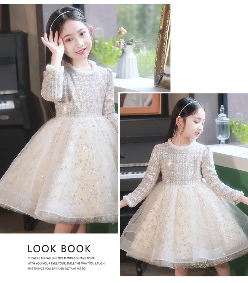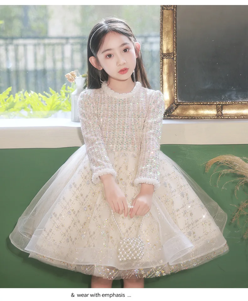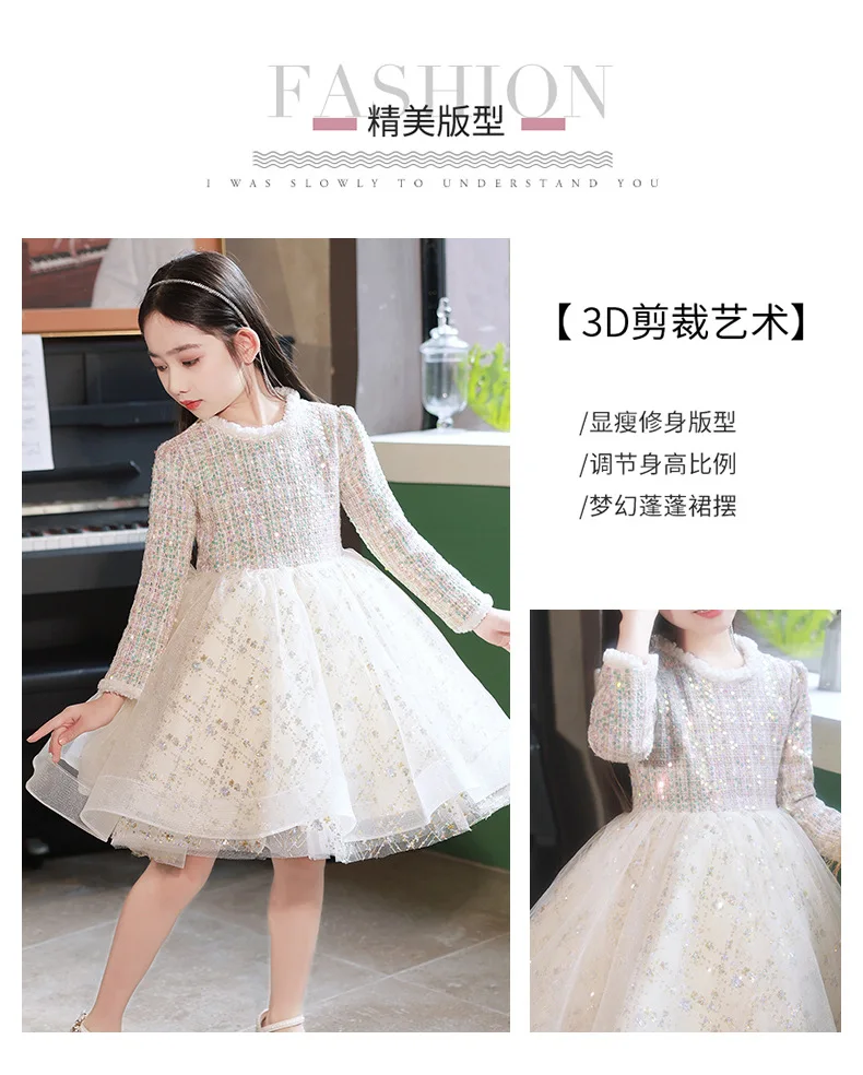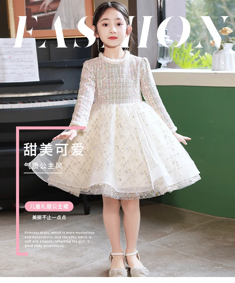 Girl’s Dress Entry Lux Elegant Princess Dress Host Piano Playing Flower Girl Bubble Skirt
