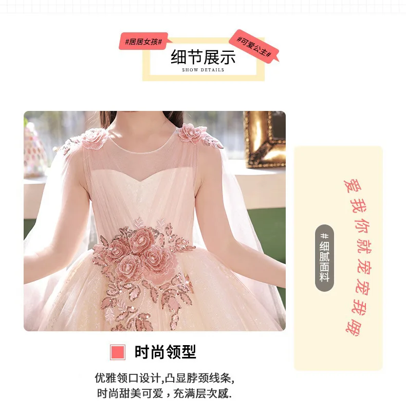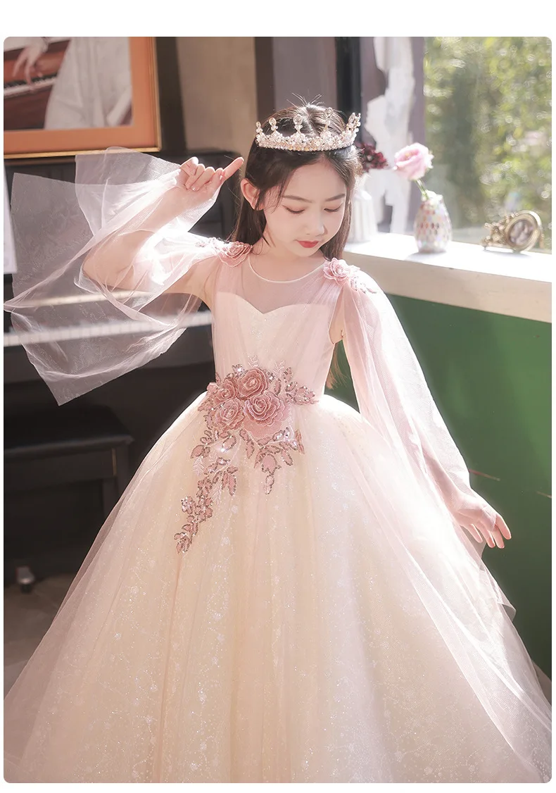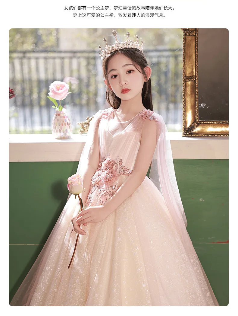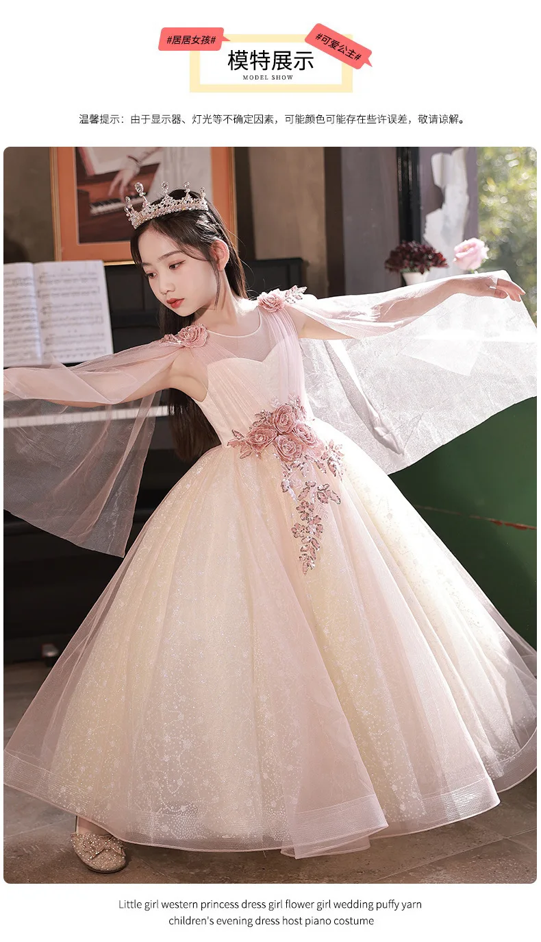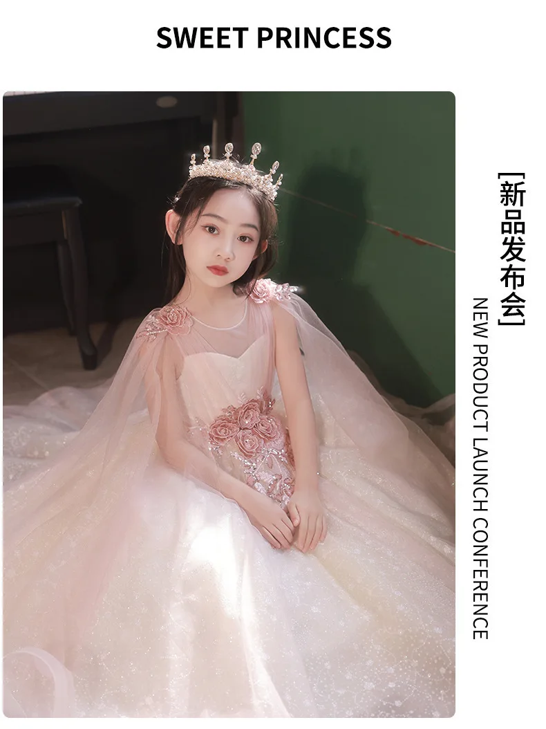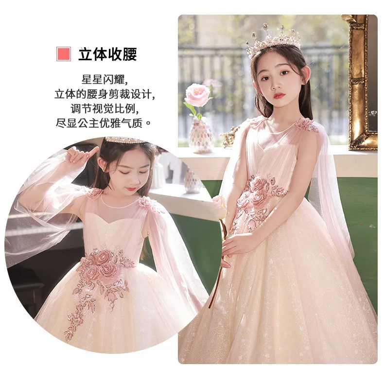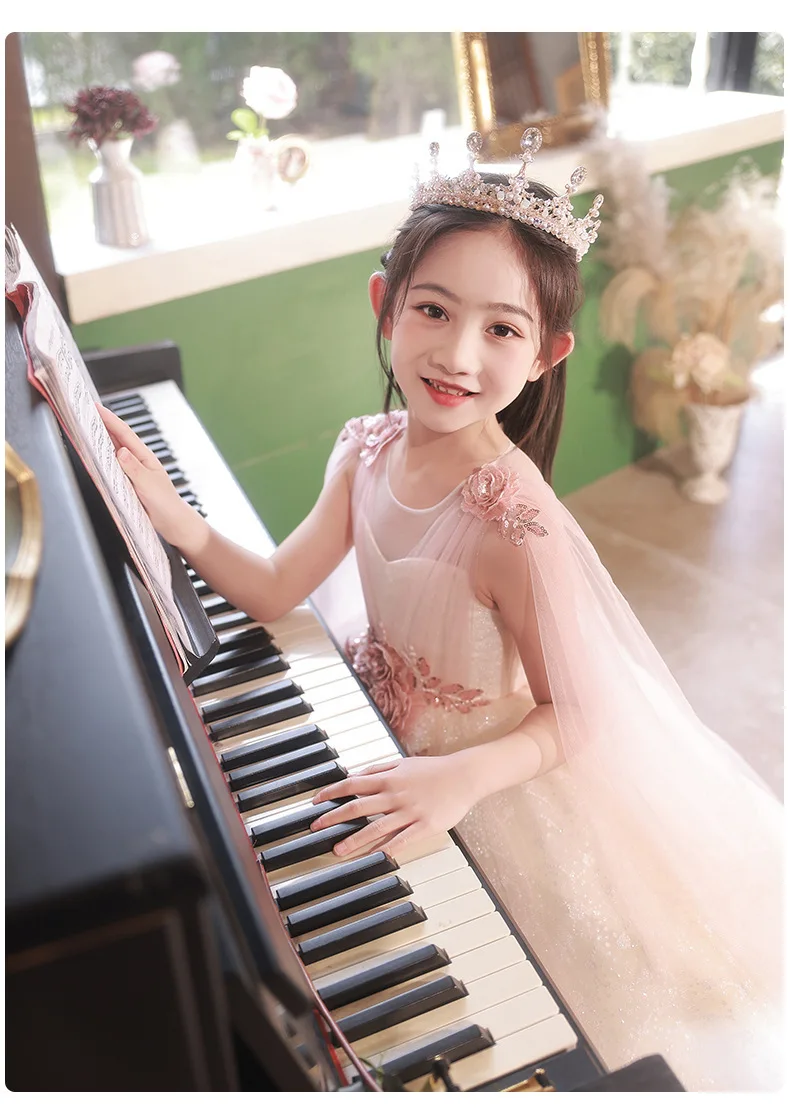 Girls’ Dress2024New Sweet Elegant Guzheng Performance Costume Girls’ Piano Solo Catwalk Evening Dress