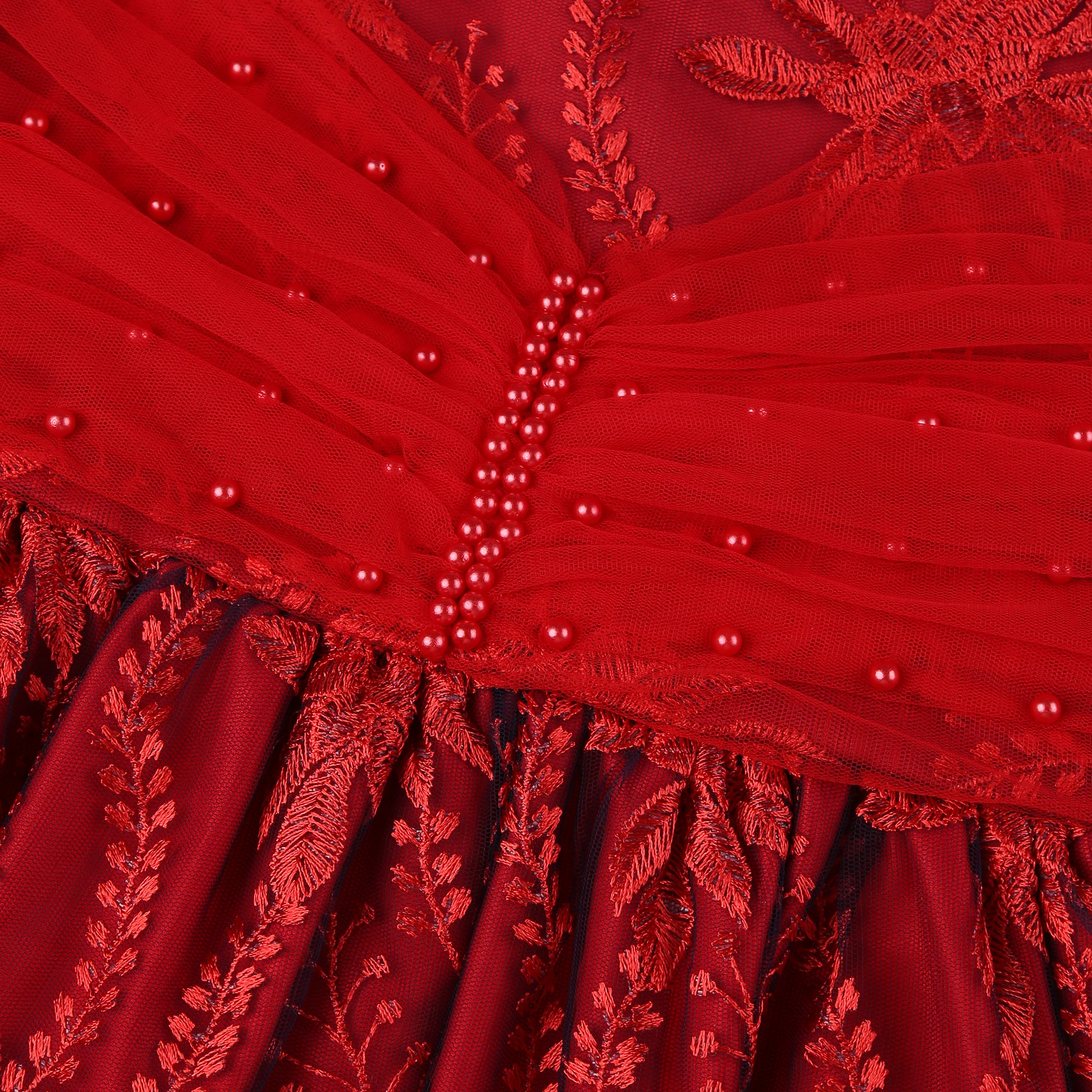 Girls’ Gauze Pompadour Dress Lace Children Holiday Dress 2025 Fashionable Elegant Girls Outfit for Special Occasions