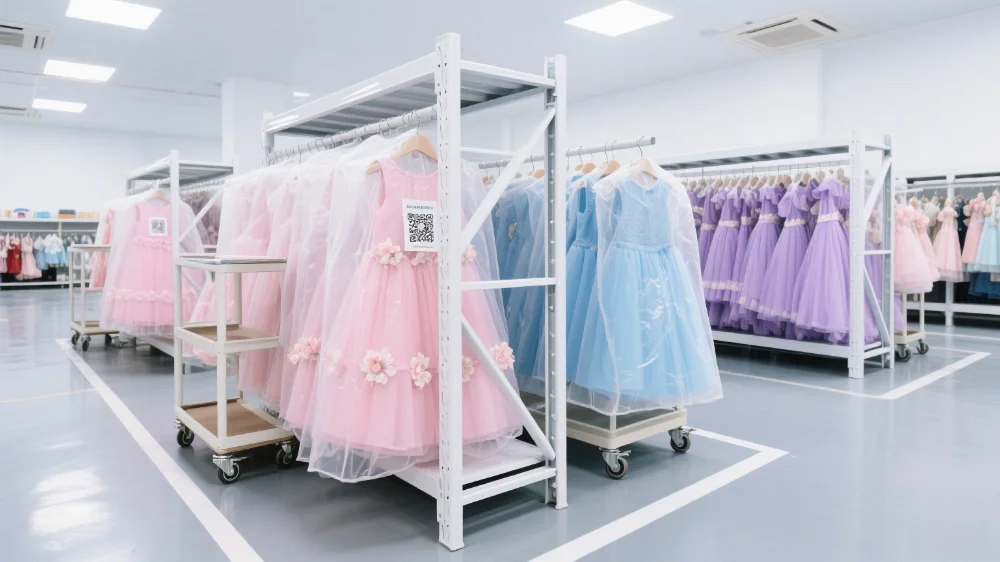 The tiered tulle gown creates a voluminous silhouette, ideal for a flower girl or birthday costume.