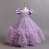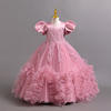 Girls Pearl Puff Sleeve Princess Dress 4-12 Years Old Fashionable Embroidered Puff Skirt Carnival Birthday Party Evening Dress