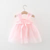 Girls’ Summer Dress Solid Color Sweet And Simple Mesh Suspender Waist Flower Princess Dress One Year Old Dress