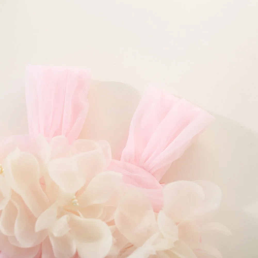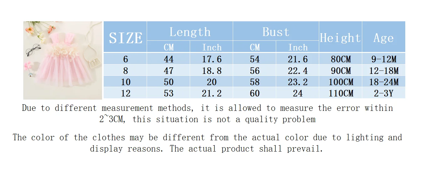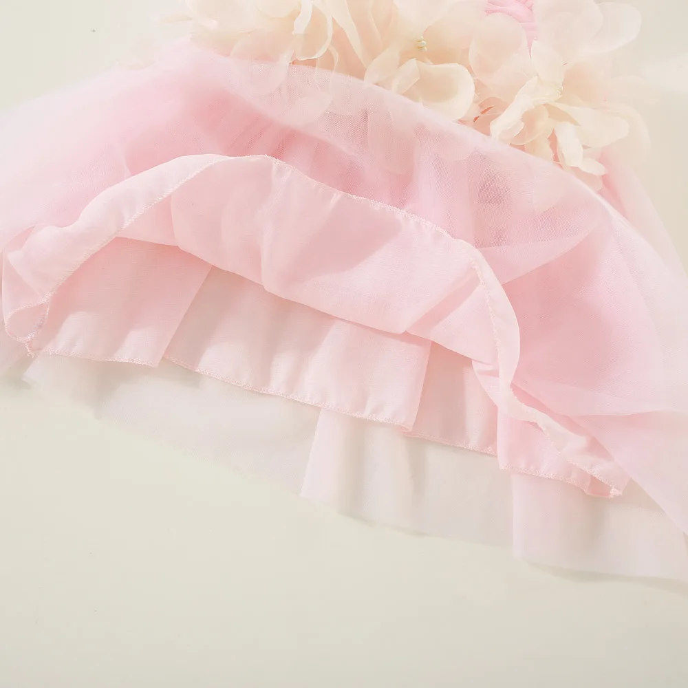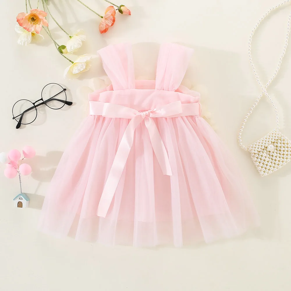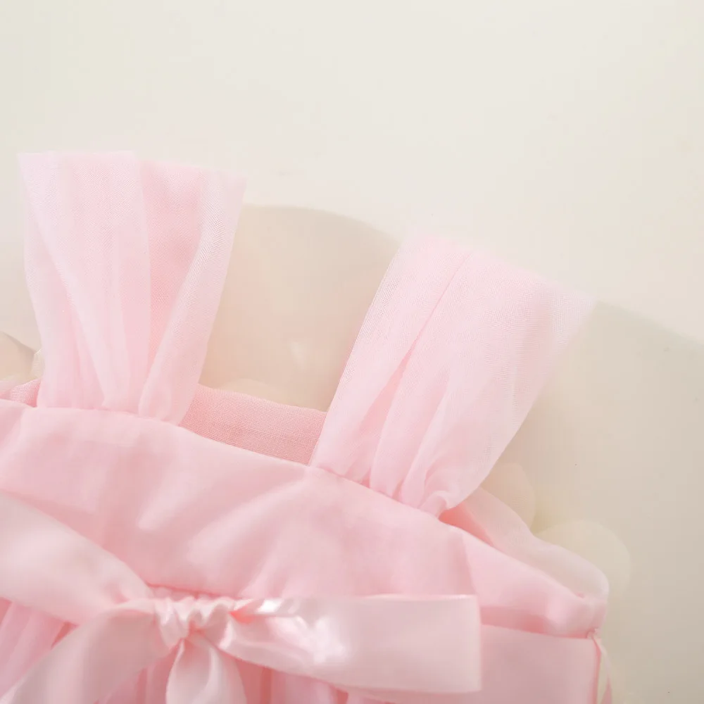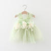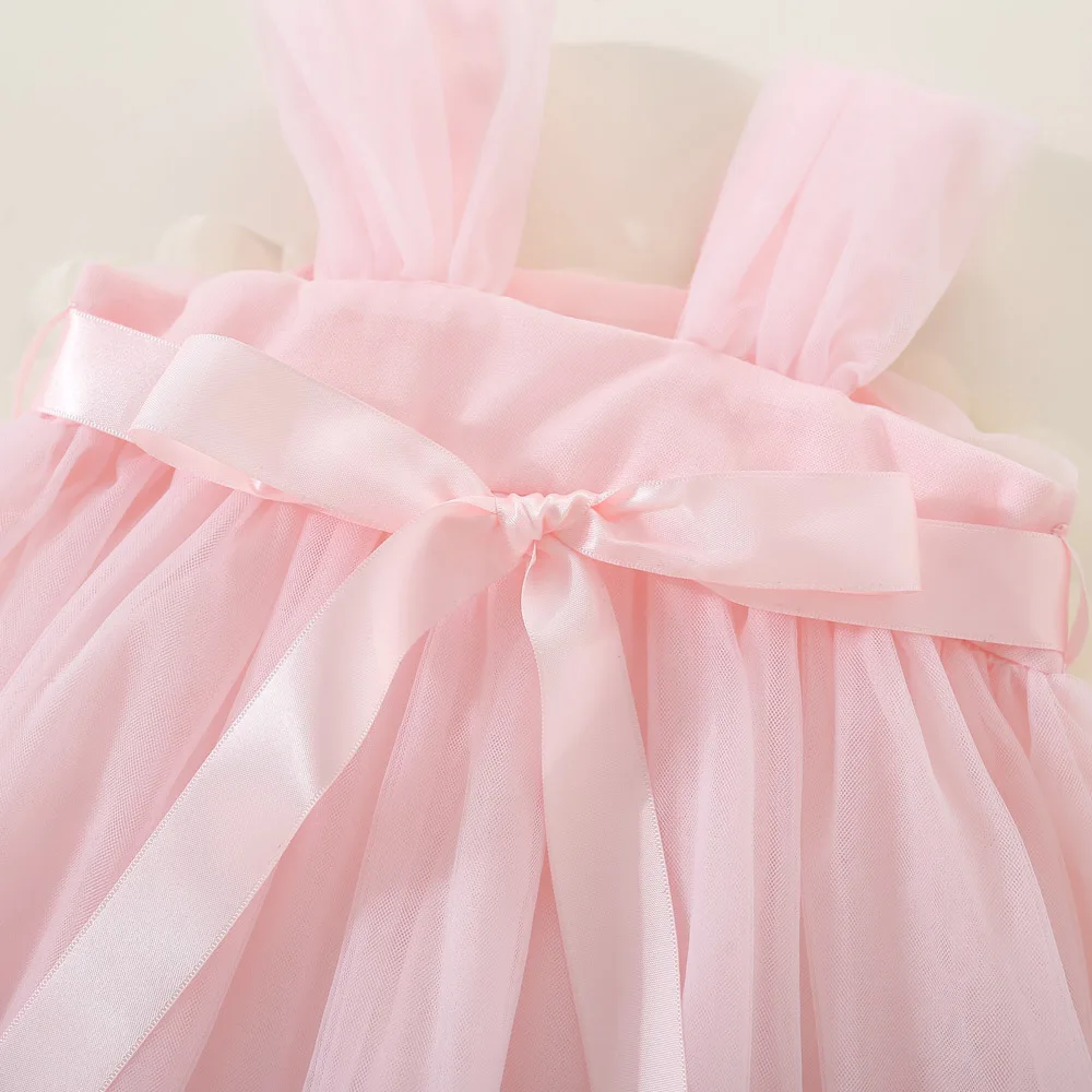 Girls’ Summer Dress Solid Color Sweet And Simple Mesh Suspender Waist Flower Princess Dress One Year Old Dress