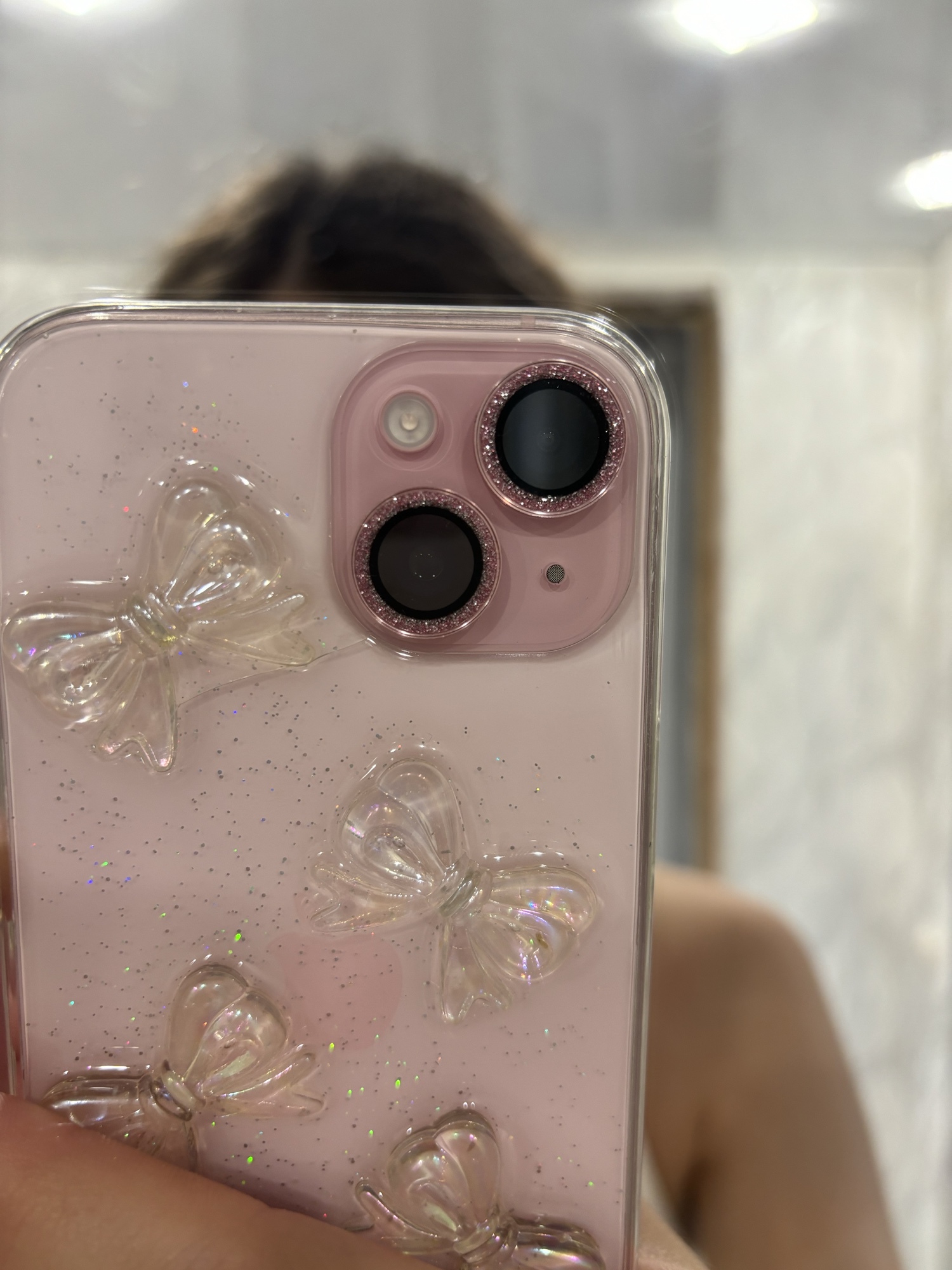 It’s pretty and easy to use, but it makes my phone look ugly when I don’t have my pink case on it because my foam is light green and the pink one was the only one with two cameras.