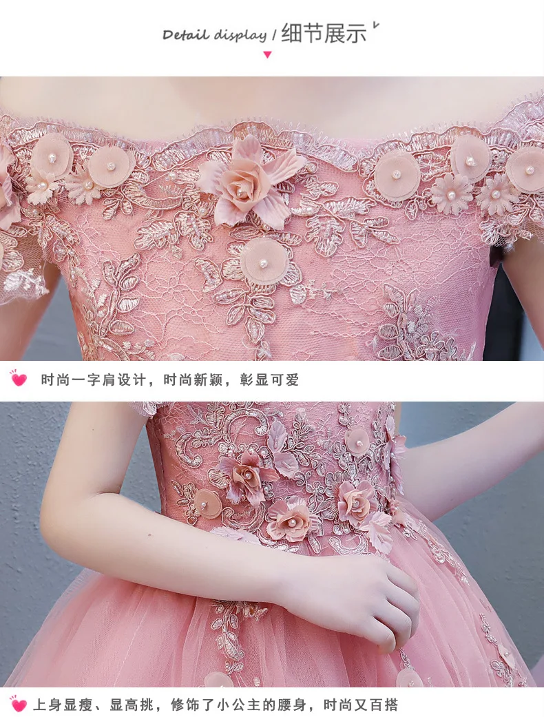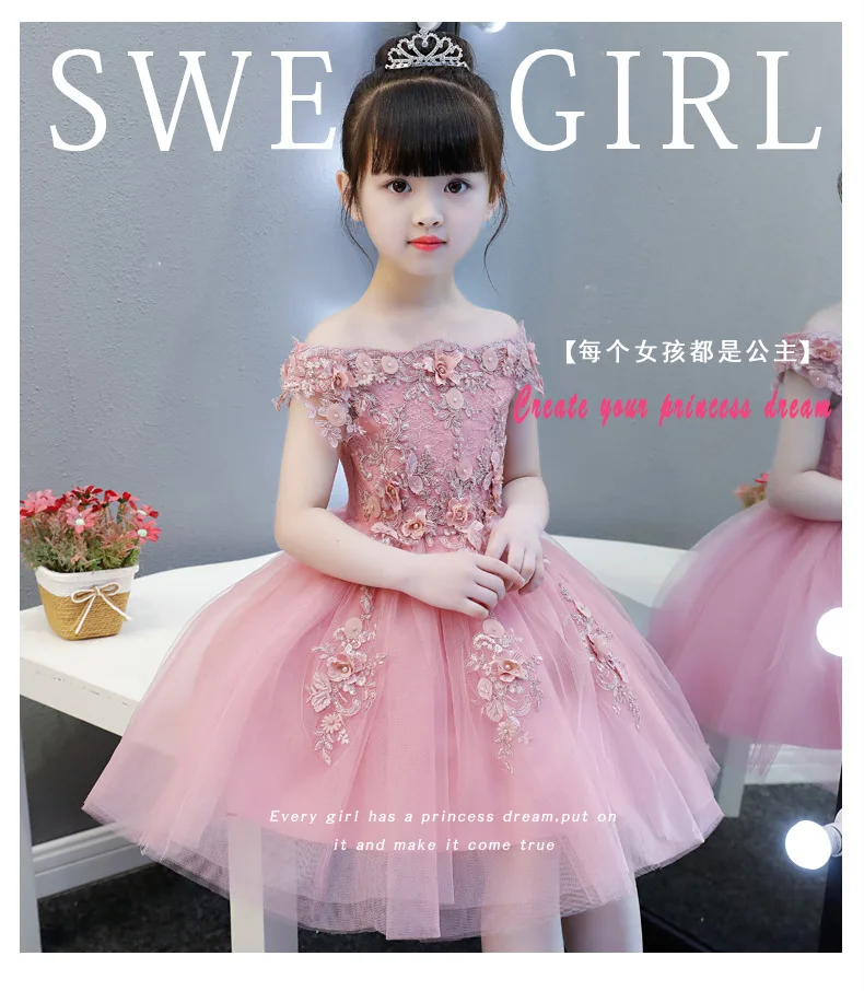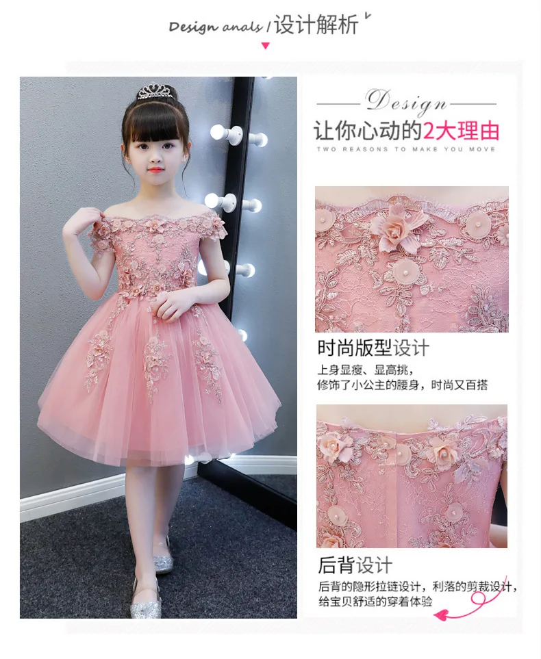 Glizt Flower Girl Dress Shoulderless Wedding Dress Appliques Party Princess Birthday Dress First Communion Gown for Girls