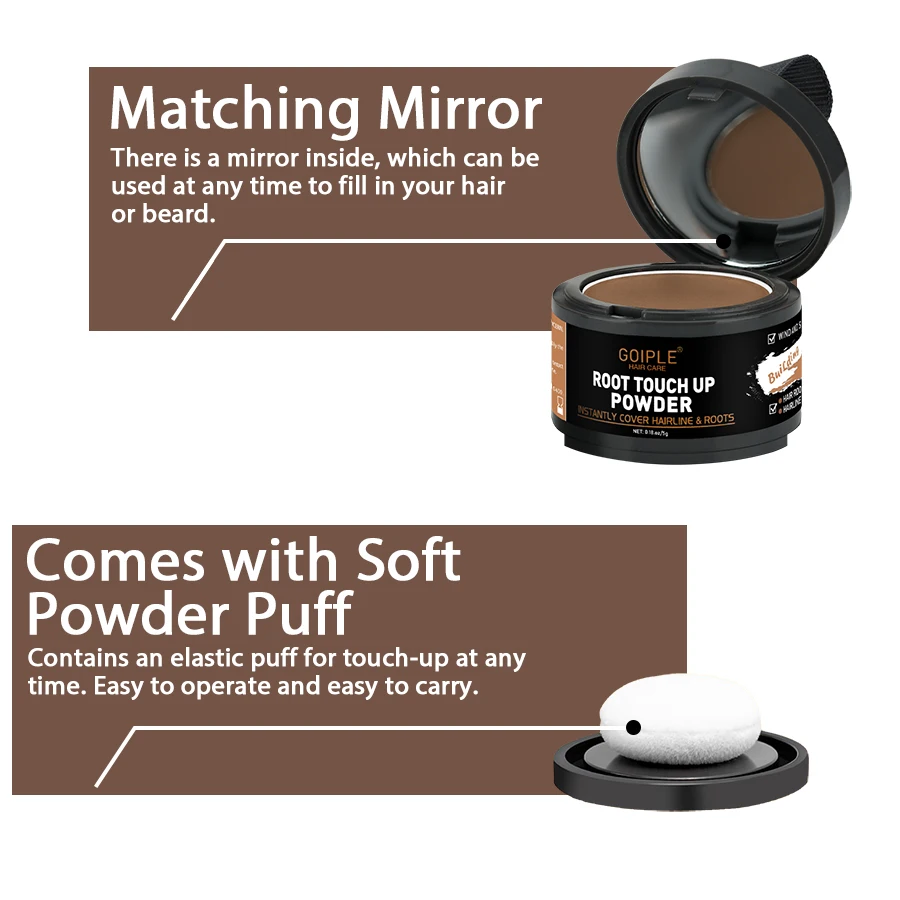 GOIPLE 3pcs/Set Hair Roots Touch Up Powder Fast Cover Gray Hair Beard Eyebrow Temporary Dyeing Powder Men Women Makeup Products