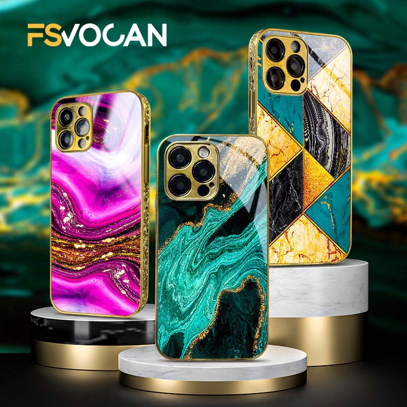 Golden Art Marble Design For iPhone Shockproof Gold Case For iPhone 16 15 14 13 12 11 Pro Max Green Blue Purple Pattern Luxury Capa