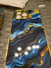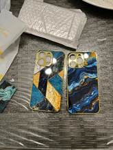 Golden Art Marble Design For iPhone Shockproof Gold Case For iPhone 16 15 14 13 12 11 Pro Max Green Blue Purple Pattern Luxury Capa