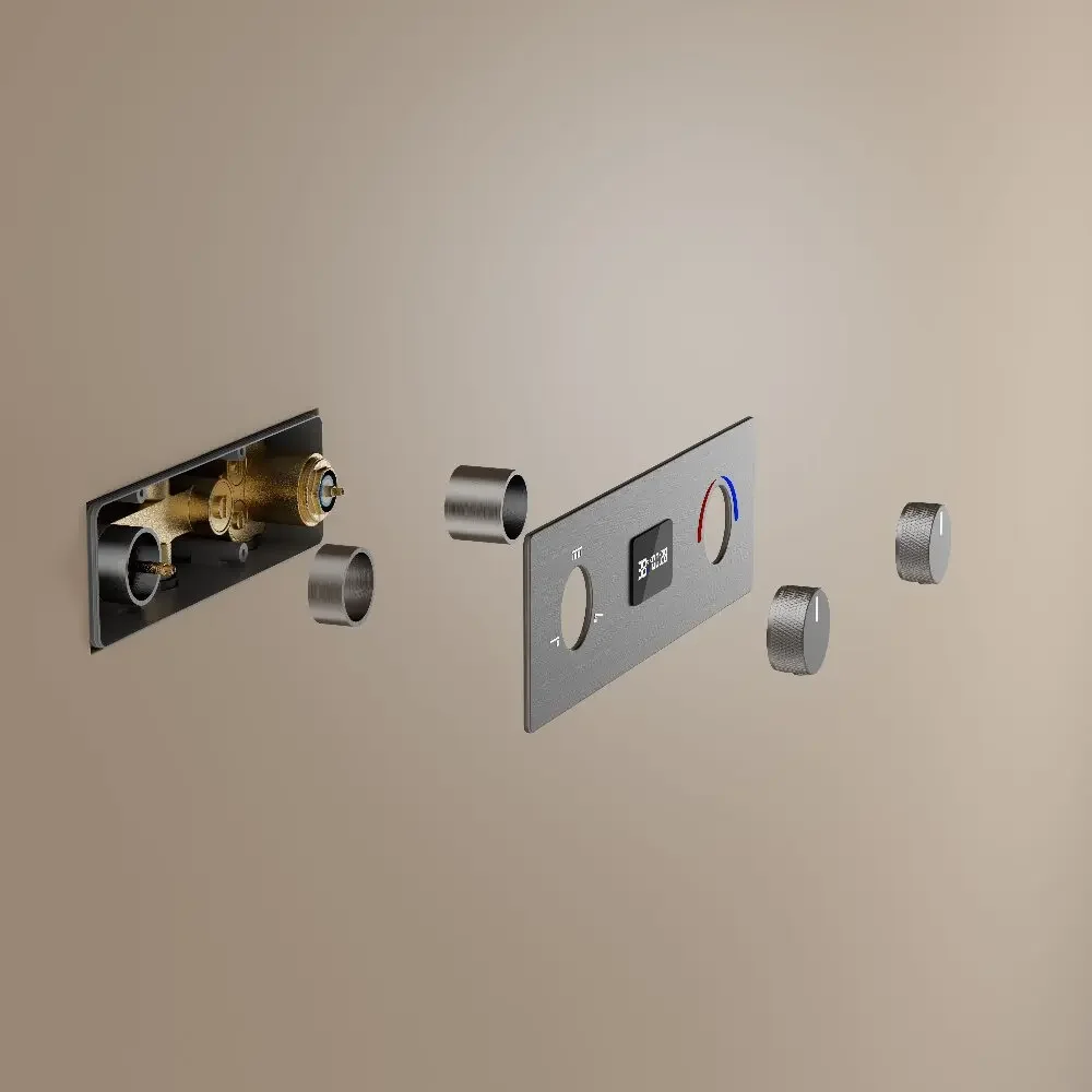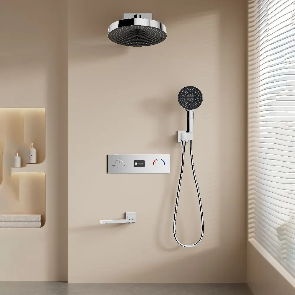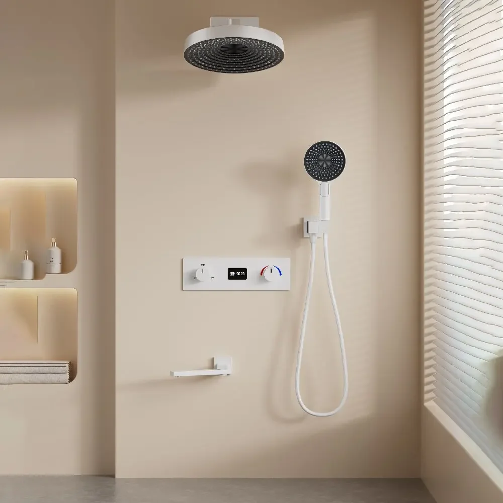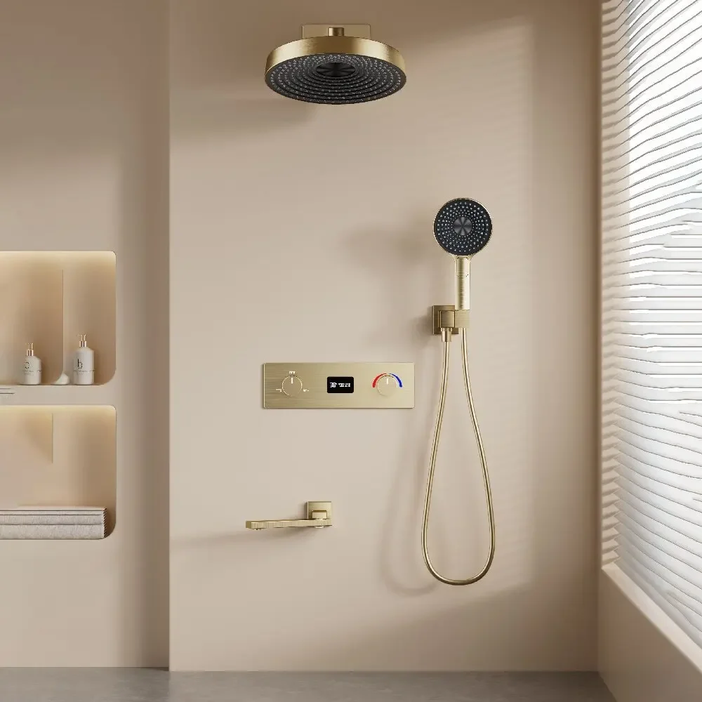 Grey Thermostatic Bathroom Shower Faucet in Wall Black Bath and Shower Faucet Set Thermostatic Mixer Bath and Rainfall Shower