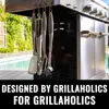 Grillaholics Premium BBQ Grill Tools – Luxury 4-Piece Barbecue Utensils Grill Set – Wooden Gift Box Includes Barbeque Tongs