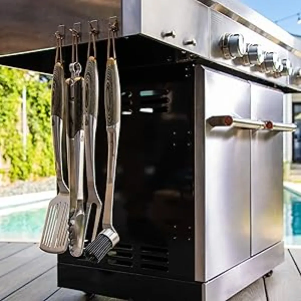 Grillaholics Premium BBQ Grill Tools – Luxury 4-Piece Barbecue Utensils Grill Set – Wooden Gift Box Includes Barbeque Tongs