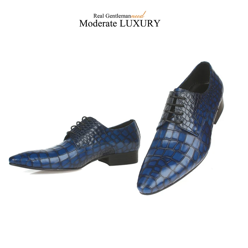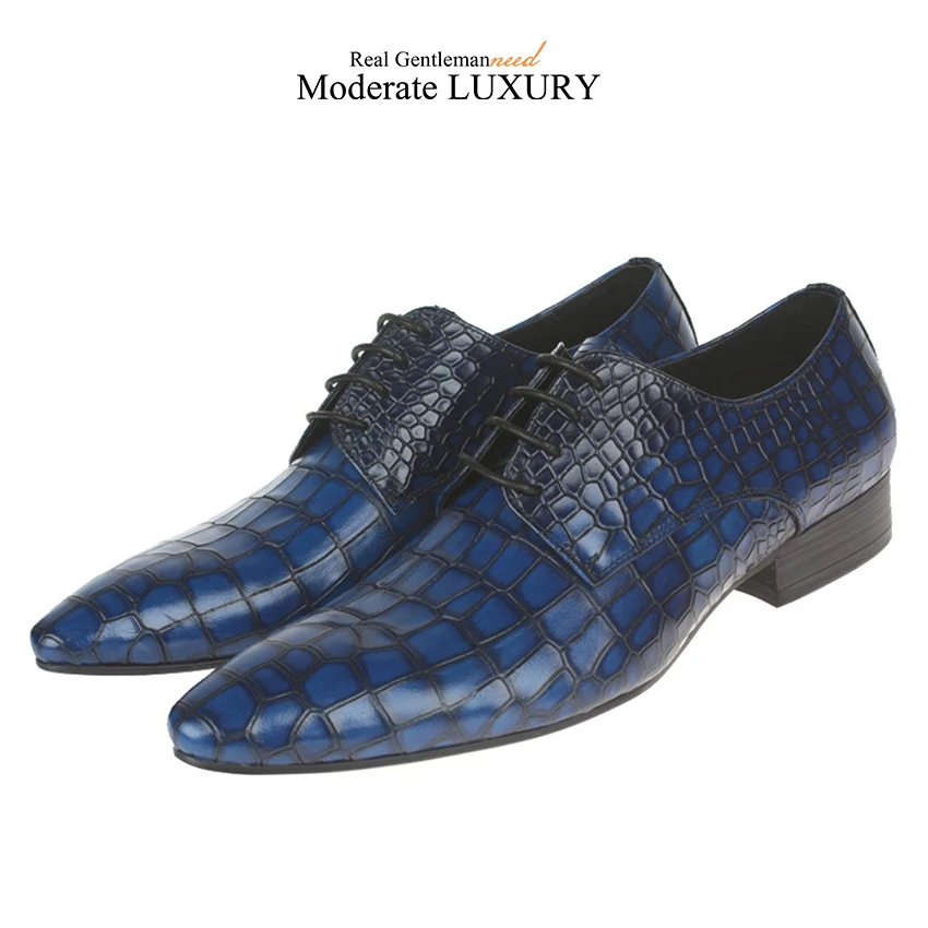Grimentin Fashion genuine leather mens dress shoes sales blue male shoes men for business
