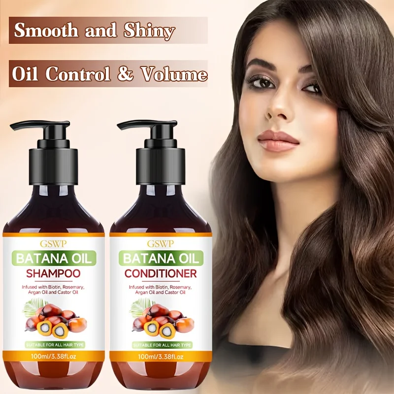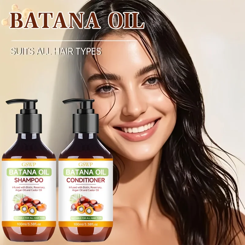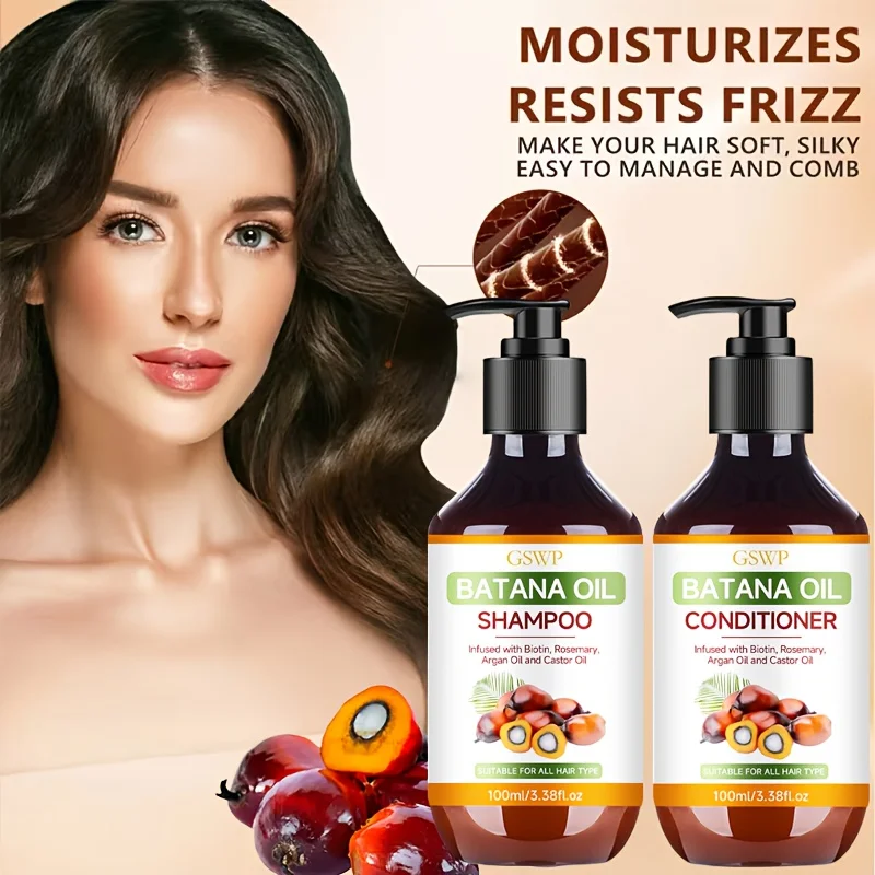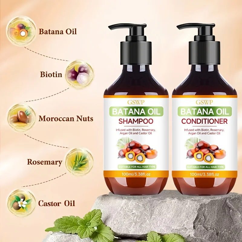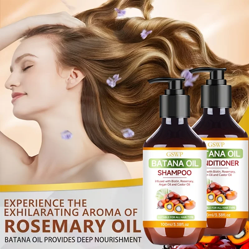GSWP Batana Oil Shampoo and Conditioner Set, enriched with argan oil and rosemary oil. Deeply moisturizes while gently cleansing