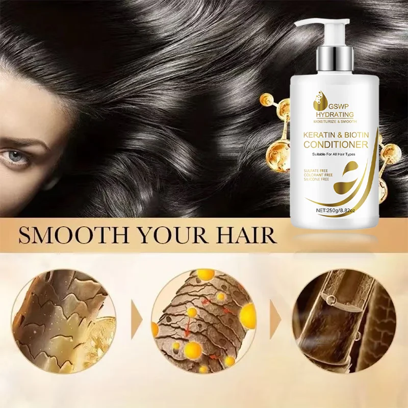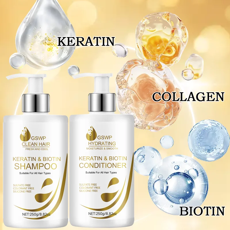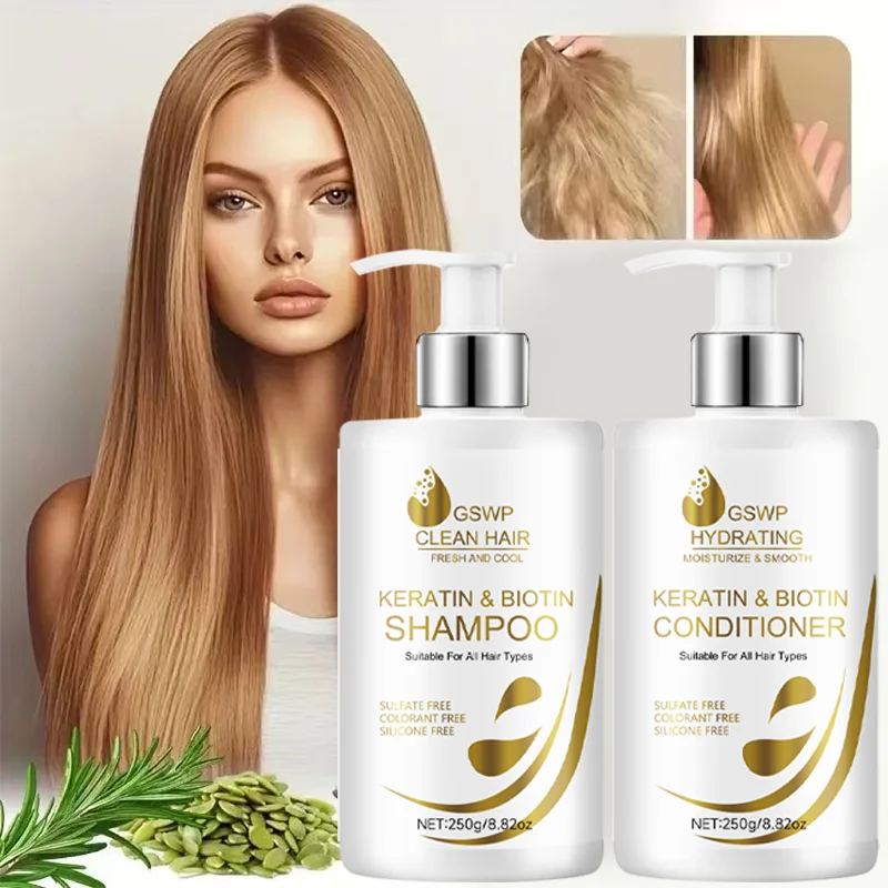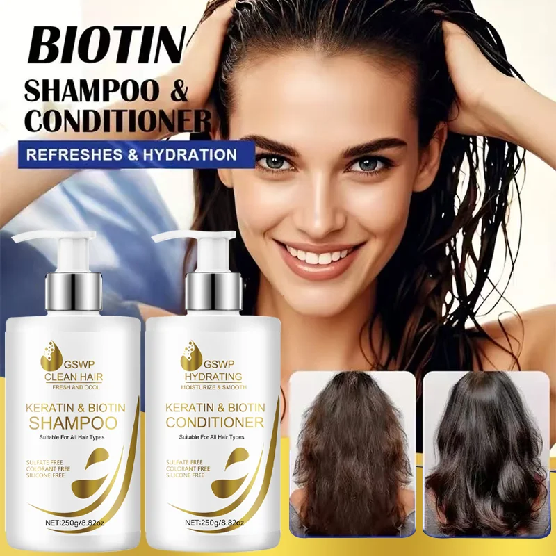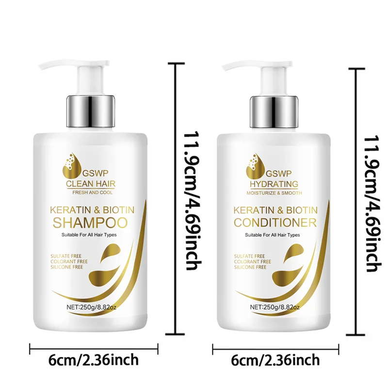GSWP Large capacity Keratin Biotin Shampoo Conditioner Set: Rich lather, controls frizz, leaves hair smooth and shiny, 250g+250g