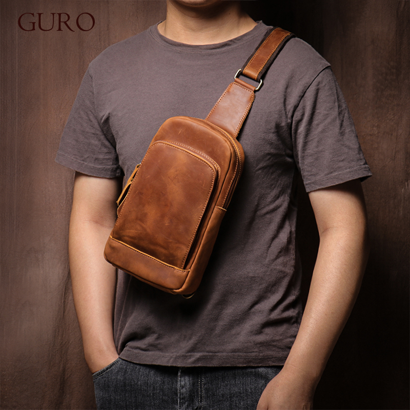 GURO Luxury Top Cowhide Chest Bag Men’s Genuine Leather Sling Bag Vintage Outdoor Travel Shoulder Bag Man High Quality Crossbody