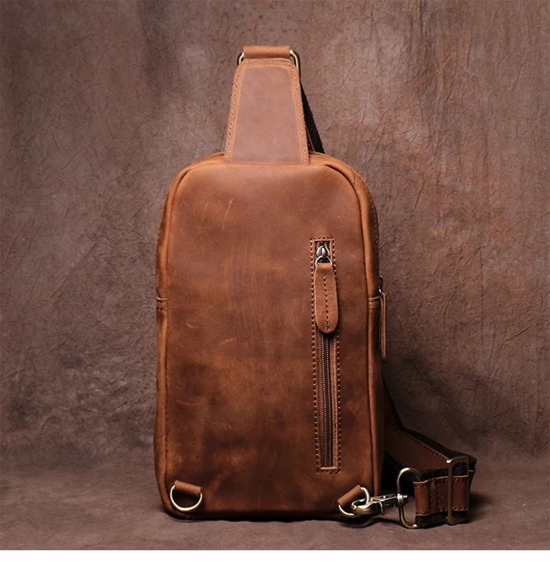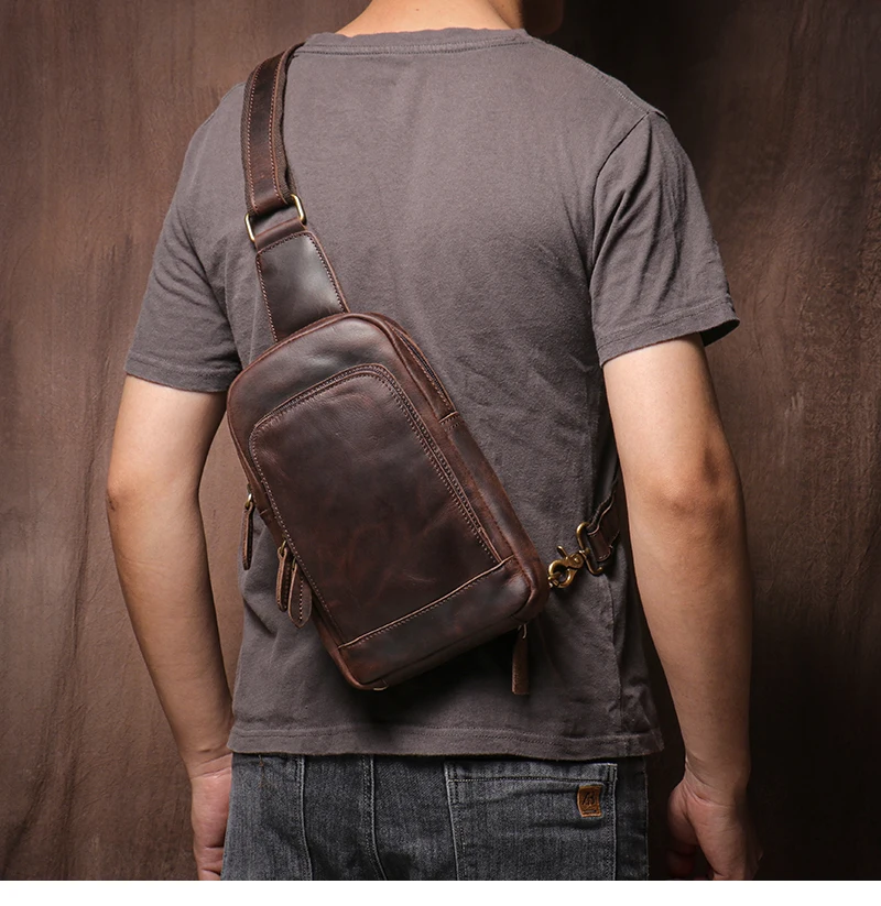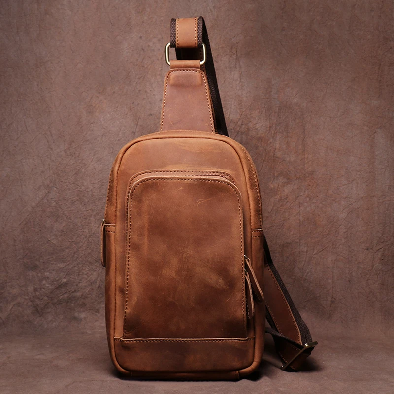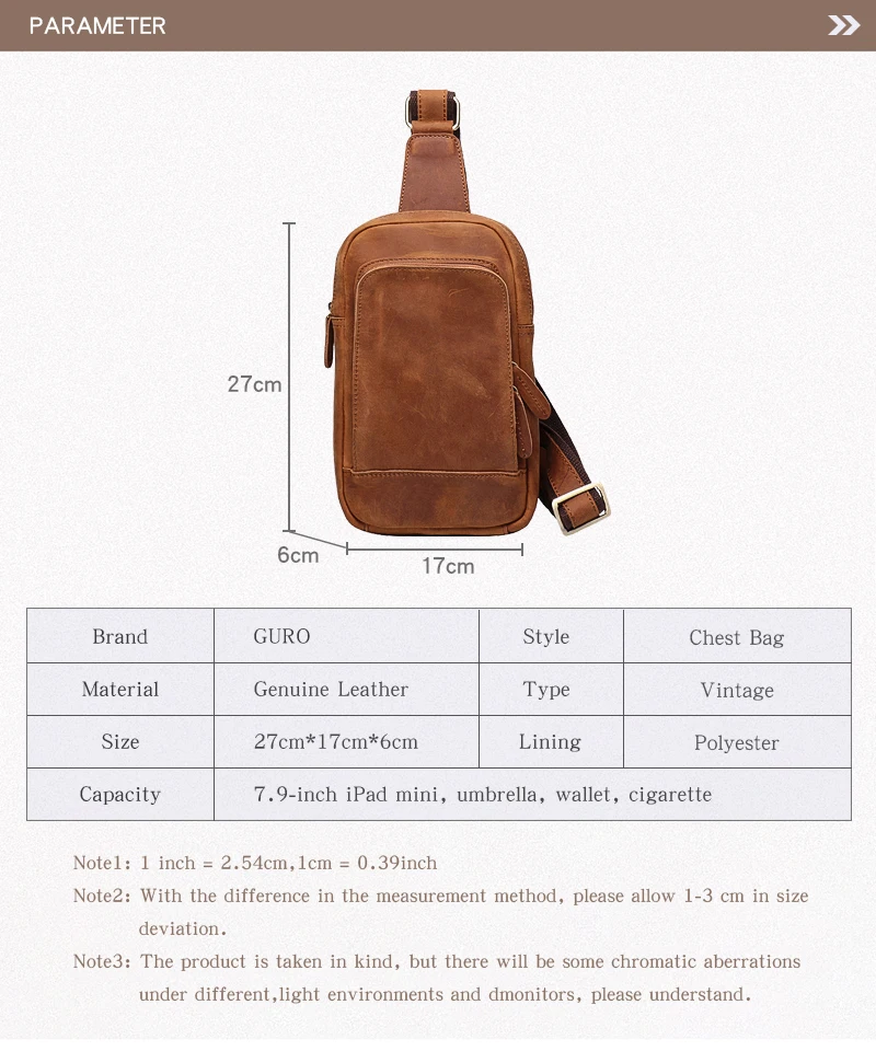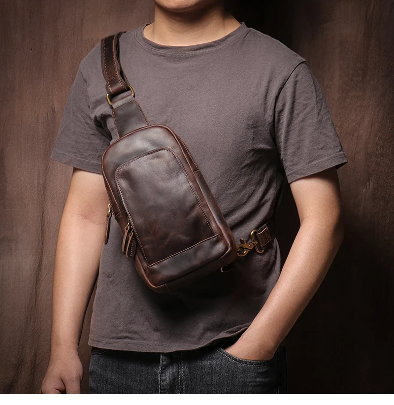 GURO Luxury Top Cowhide Chest Bag Men’s Genuine Leather Sling Bag Vintage Outdoor Travel Shoulder Bag Man High Quality Crossbody