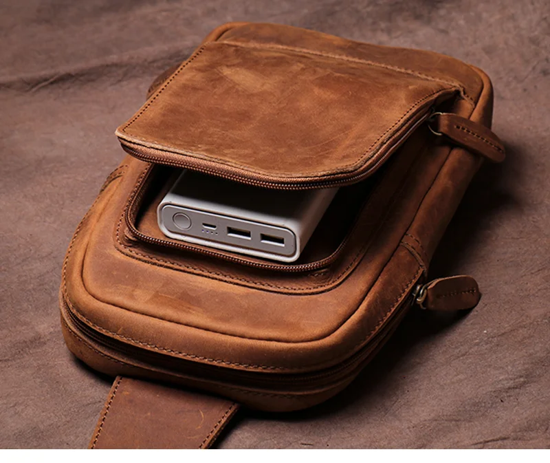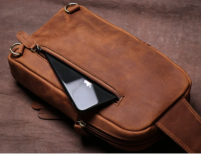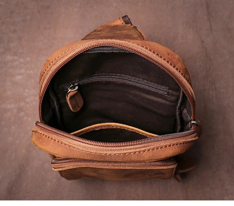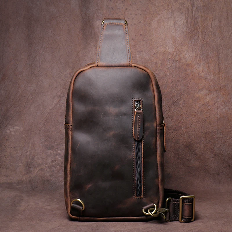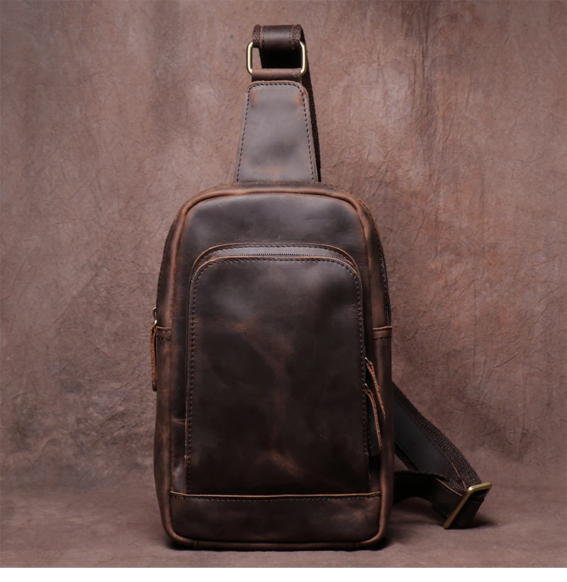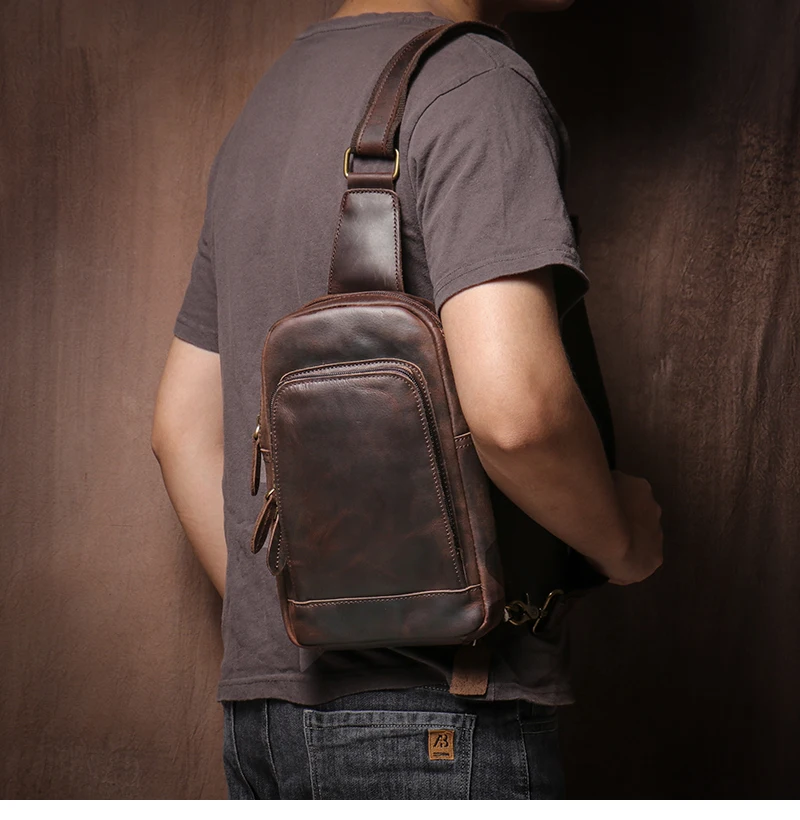 GURO Luxury Top Cowhide Chest Bag Men’s Genuine Leather Sling Bag Vintage Outdoor Travel Shoulder Bag Man High Quality Crossbody