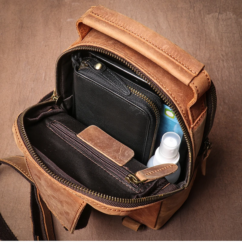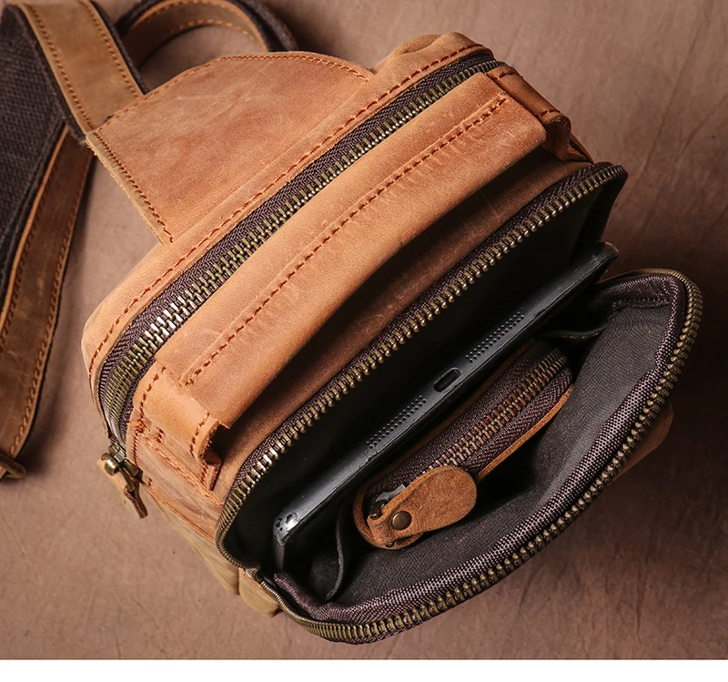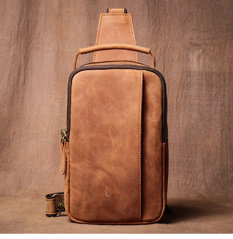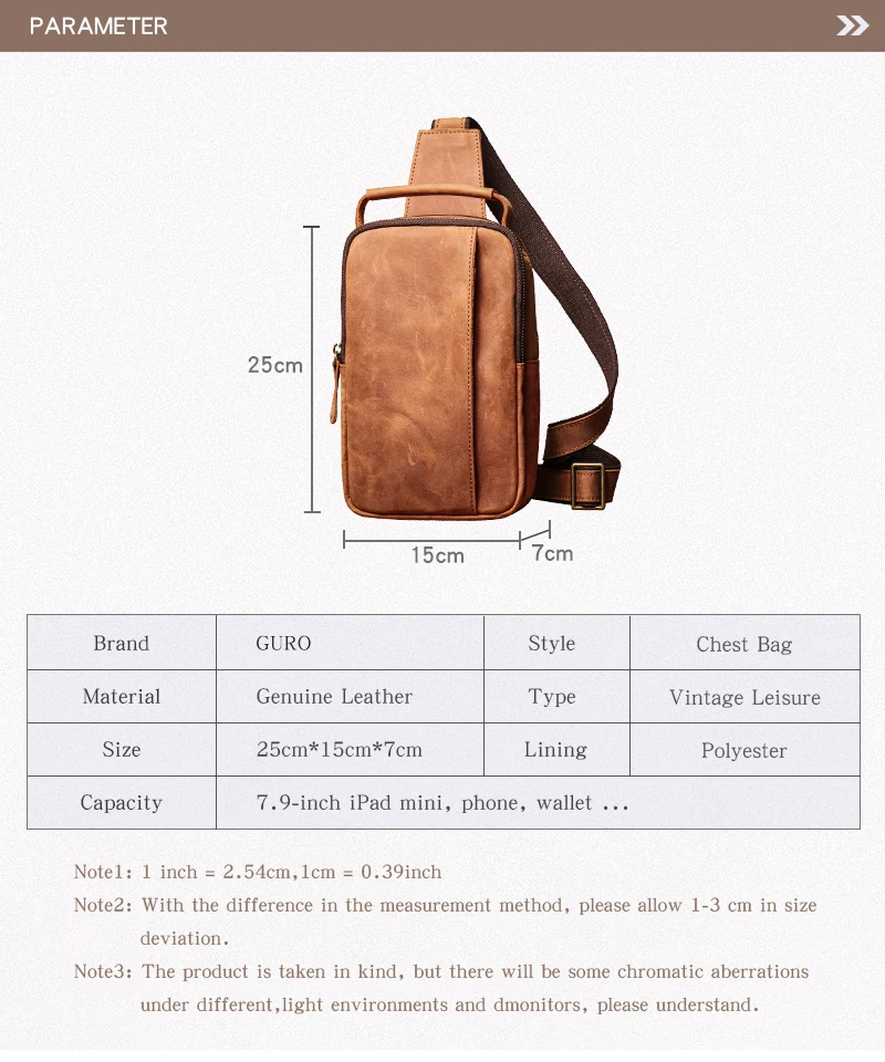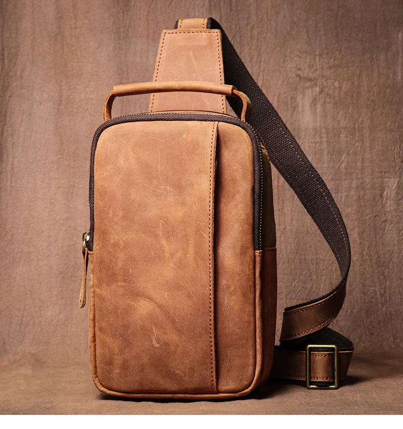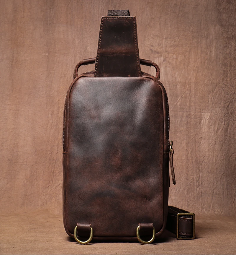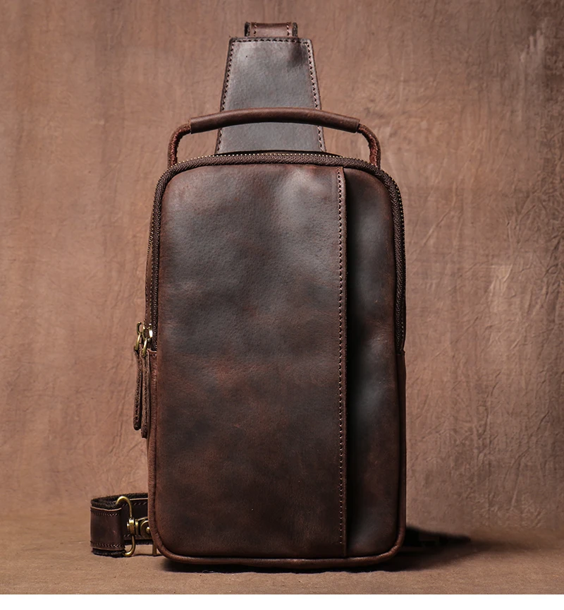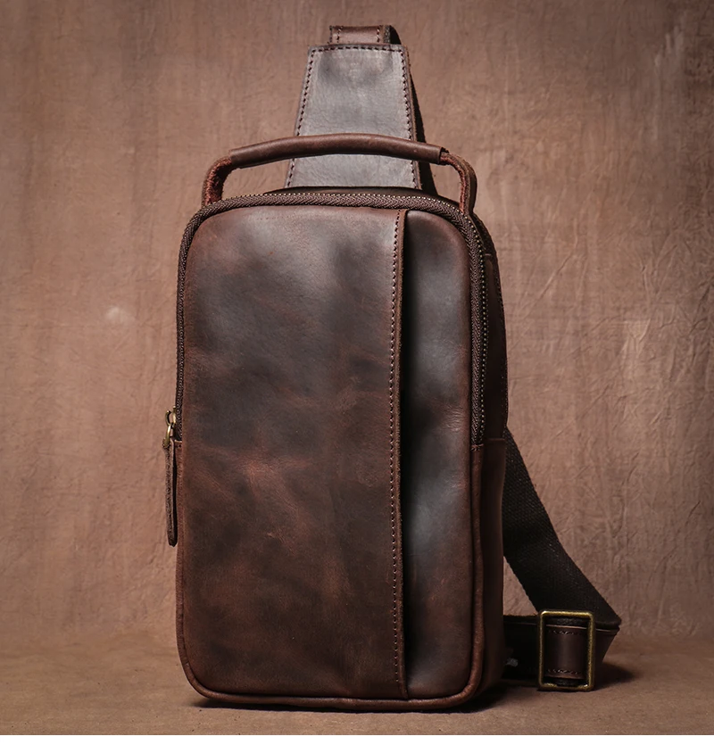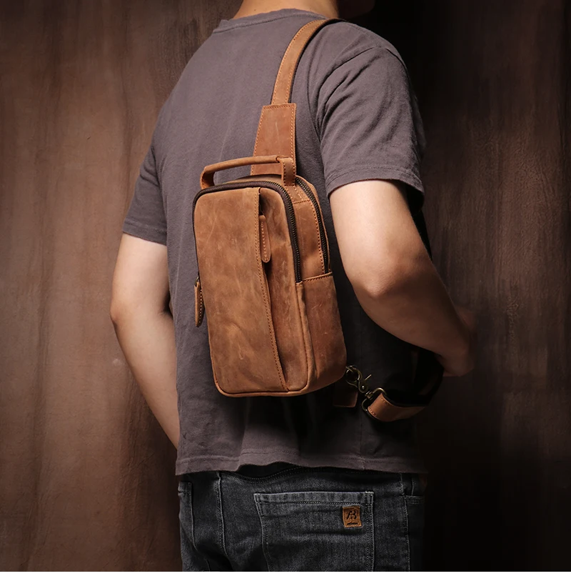 GURO Men’s Higher Quality Chest Pack Vintage Genuine Leather Travel Sling Bag Male Luxury satchel Crazy Horse Cowhide Crossbody