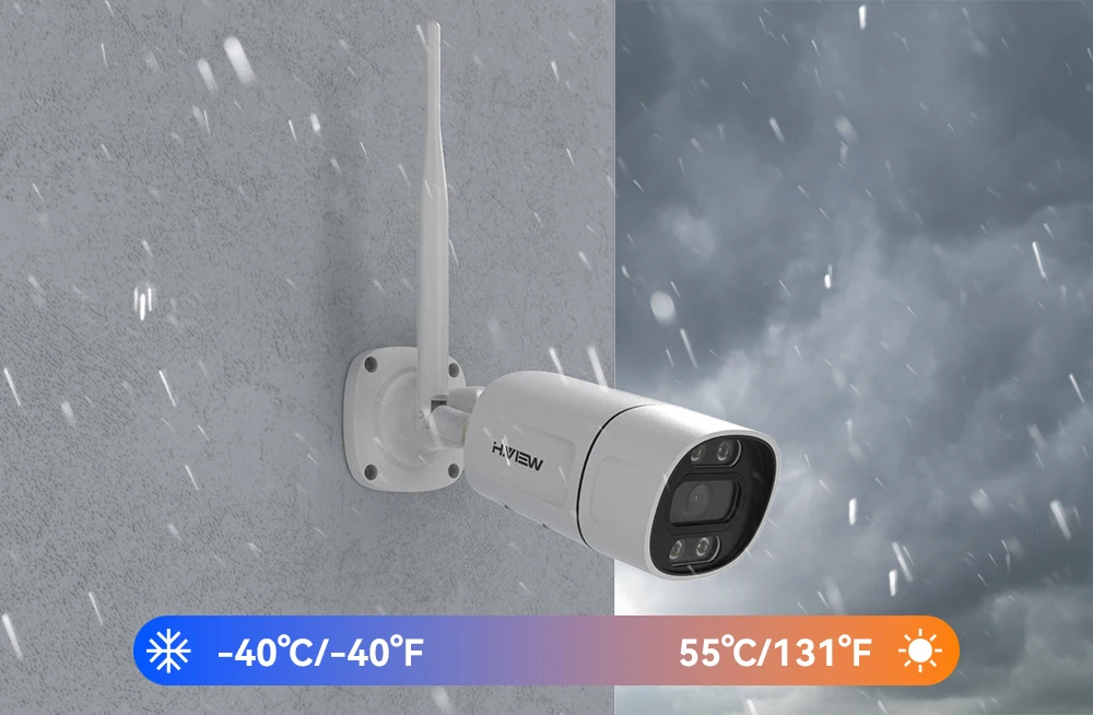 Metal housing Camera with IP66 waterproof rating. So you can install it outdoors with confidence, it can withstand harsh weather conditions including rain, snow, extreme cold and heat.