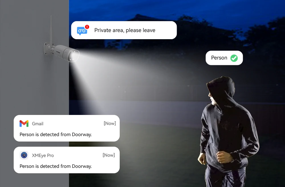AI Person Detection is Different from traditional PIR or motion detection. Built-in updated sensor will only detect human movement, won’t be triggered by leaves, animals or insects.