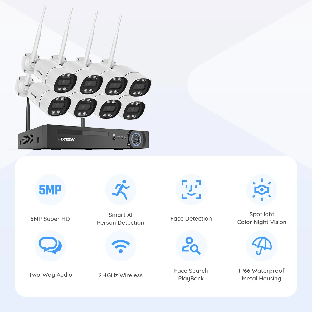 H.VIEW 5MP Face Detection Wireless Wifi Security System