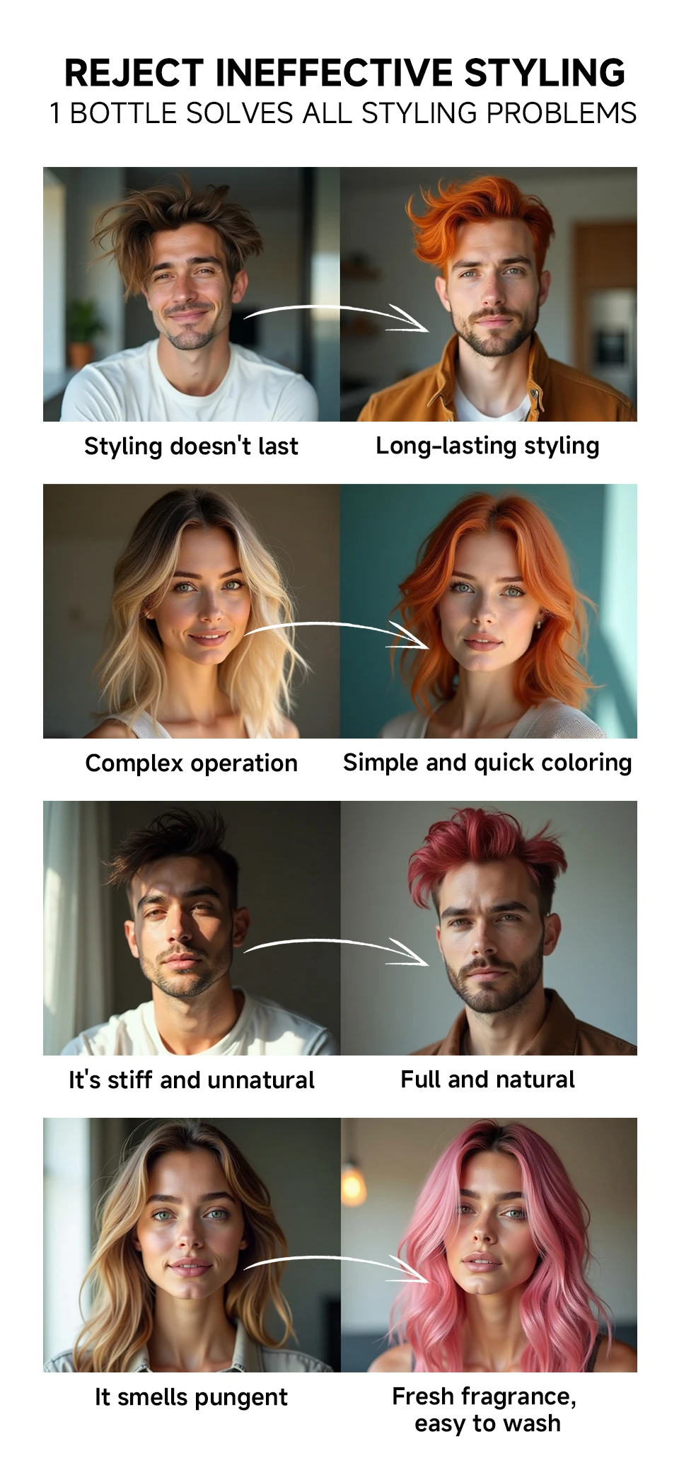 Ultra strong hold–Style any way you desire, with long lasting effect.