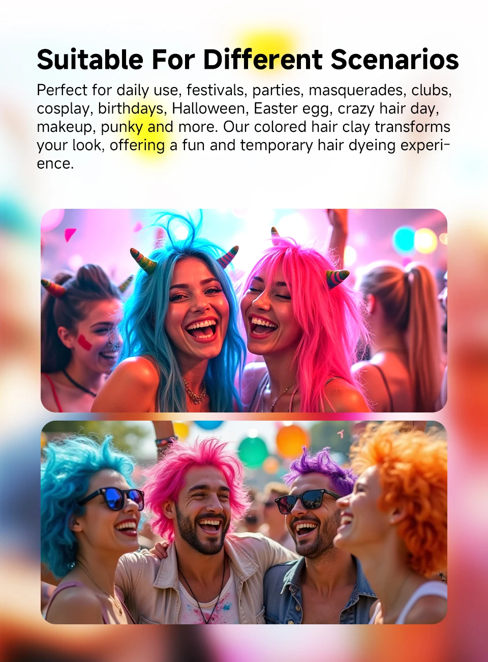 Temporary Hair Color Wax helps style your hair while providing fantastic hair dye color. Easy styling and coloring, easy to wash out, non-toxic and safe for hair & skin,strong hold with no damage, and no stickiness.