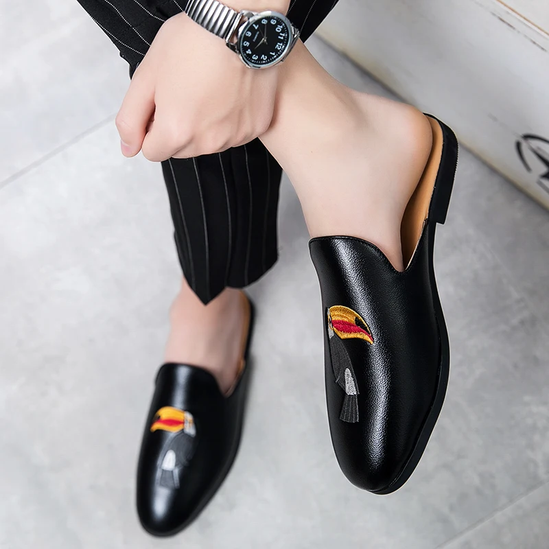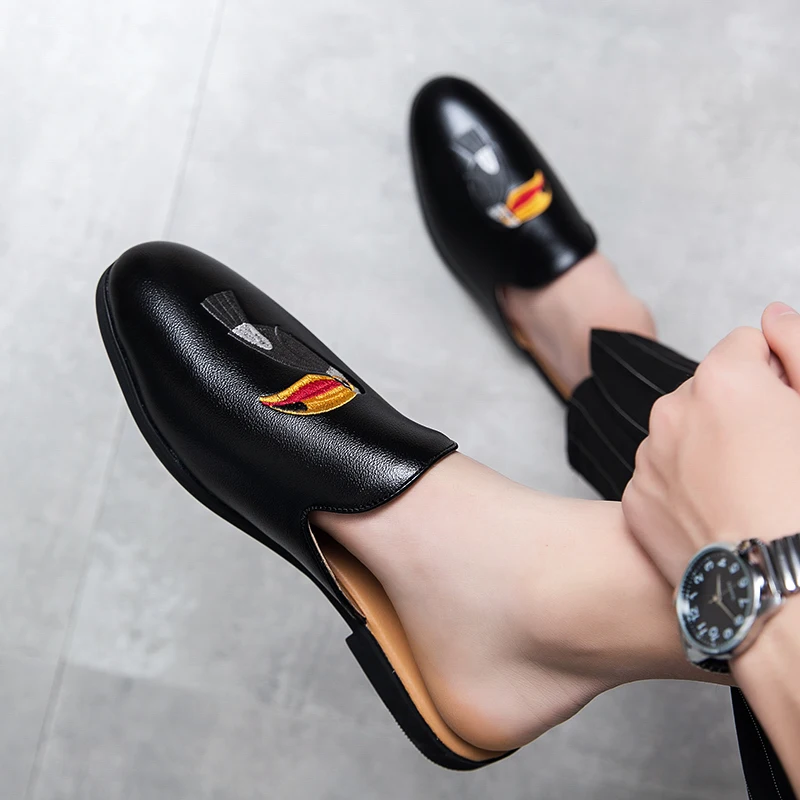 Half Drag Shoes for Men Breathable Male Casual Loafers Luxury Style Youth Walking Sandals Summer Spring Boy Slides Slippers