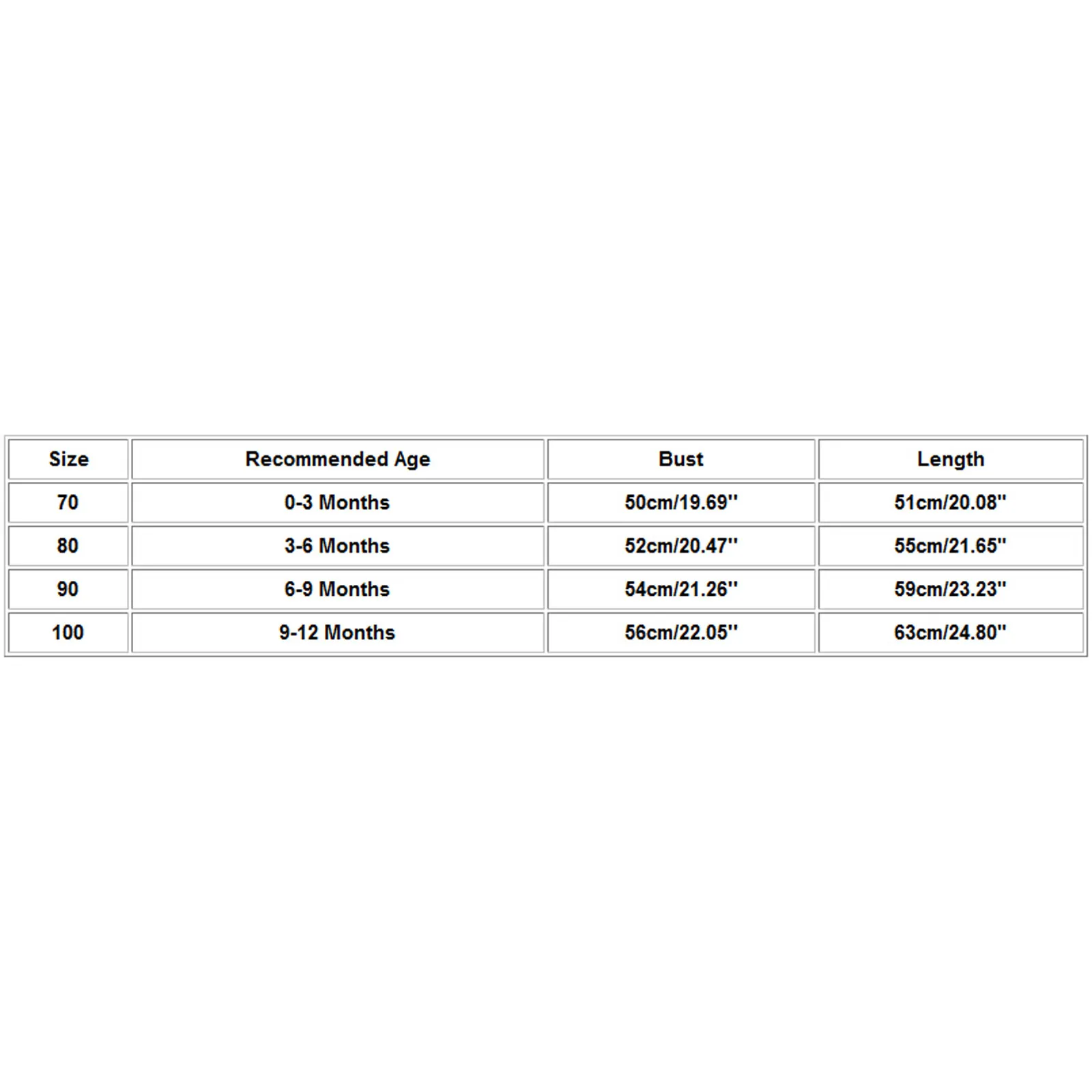 | Size:70 | Recommended Age:0-3 Months | Bust:50cm/19.69” | Length:51cm/20.08″ |