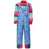 ●This costume includes a long-sleeved jumpsuit And Tattoo stickerswith printed details that looks like Chucky’s blue overalls and striped shirt; shoes, makeup and prop knife not included