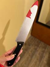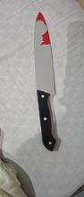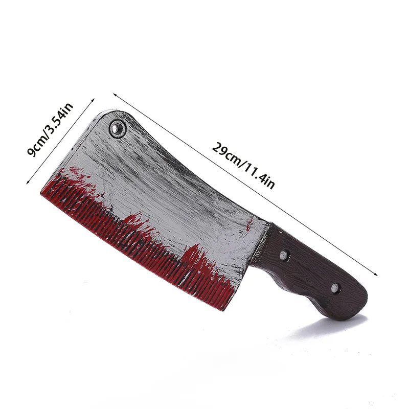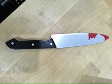 Very realistic, large kitchen knife size. Why it is stained with blood and it is seen that it is a lie. But it really seems from afar.