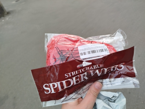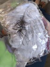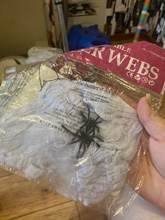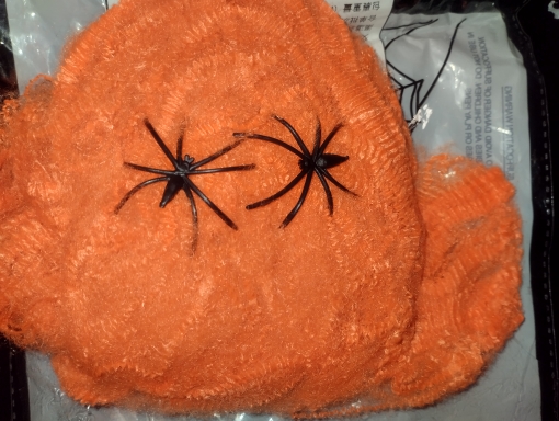 Came on time. For Halloween is the very thing. For that kind of money-great. Visually 2 spiders. The Web itself stretches strongly.