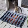I have it at the door from the garage to the house, and it amuses me every time I see it. The mat certainly does the job of reducing dirt being carried into the house. It is also machine washable.